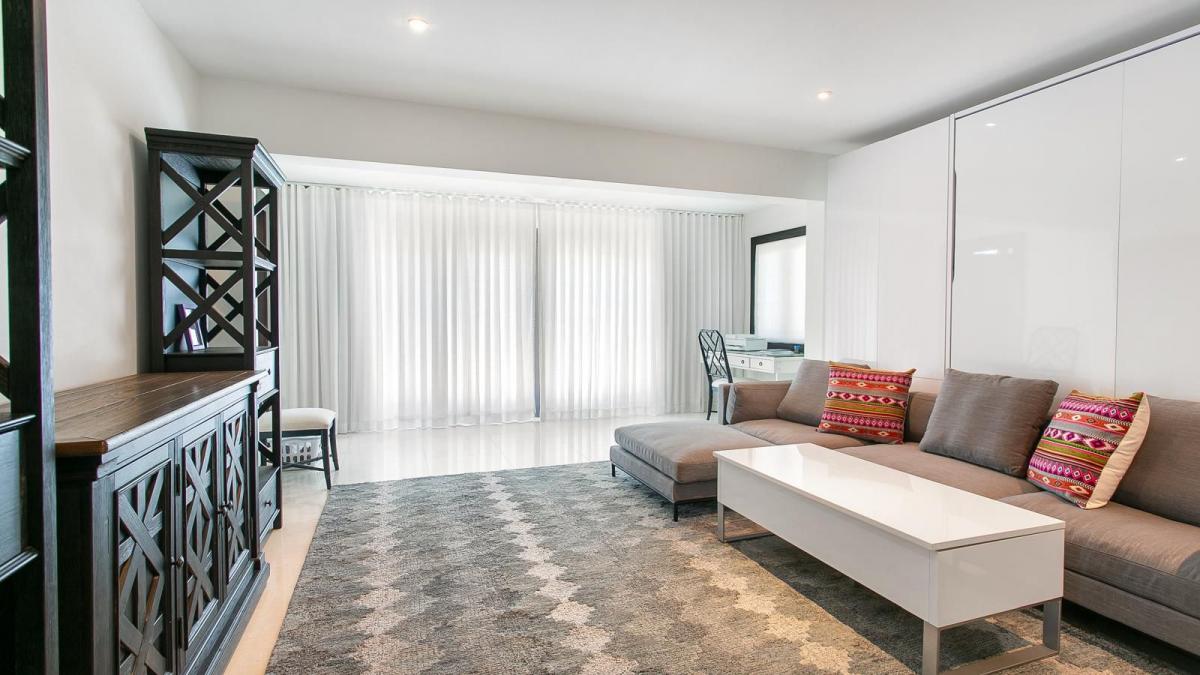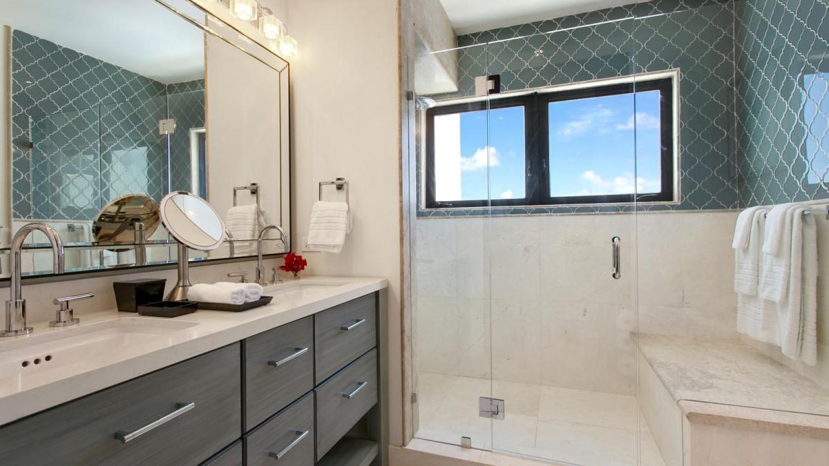Agave boasts four spacious bedrooms, each offering spectacular views of the ocean and bay below. There is also a fifth flex room which can serve as a second living room, office, or bedroom. Three of the chic bedrooms feature luxurious king-sized beds, the fourth room has two queen-sized beds, and the fifth room has a queen-sized bed. Each room has an ensuite bathroom.