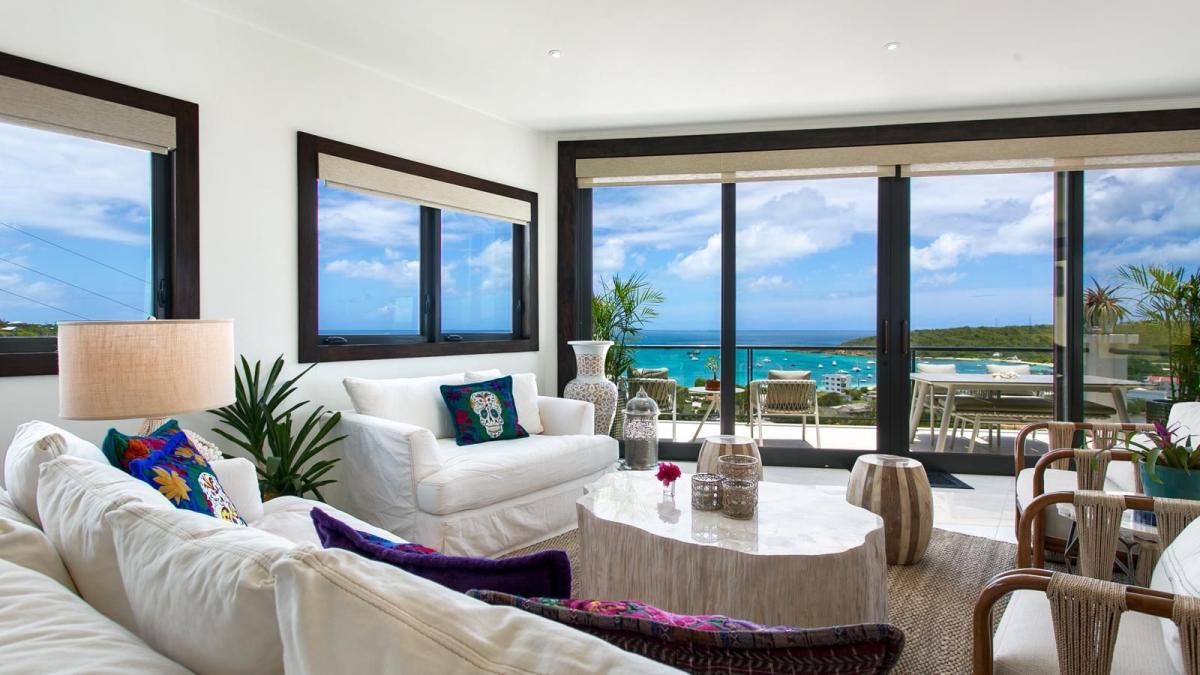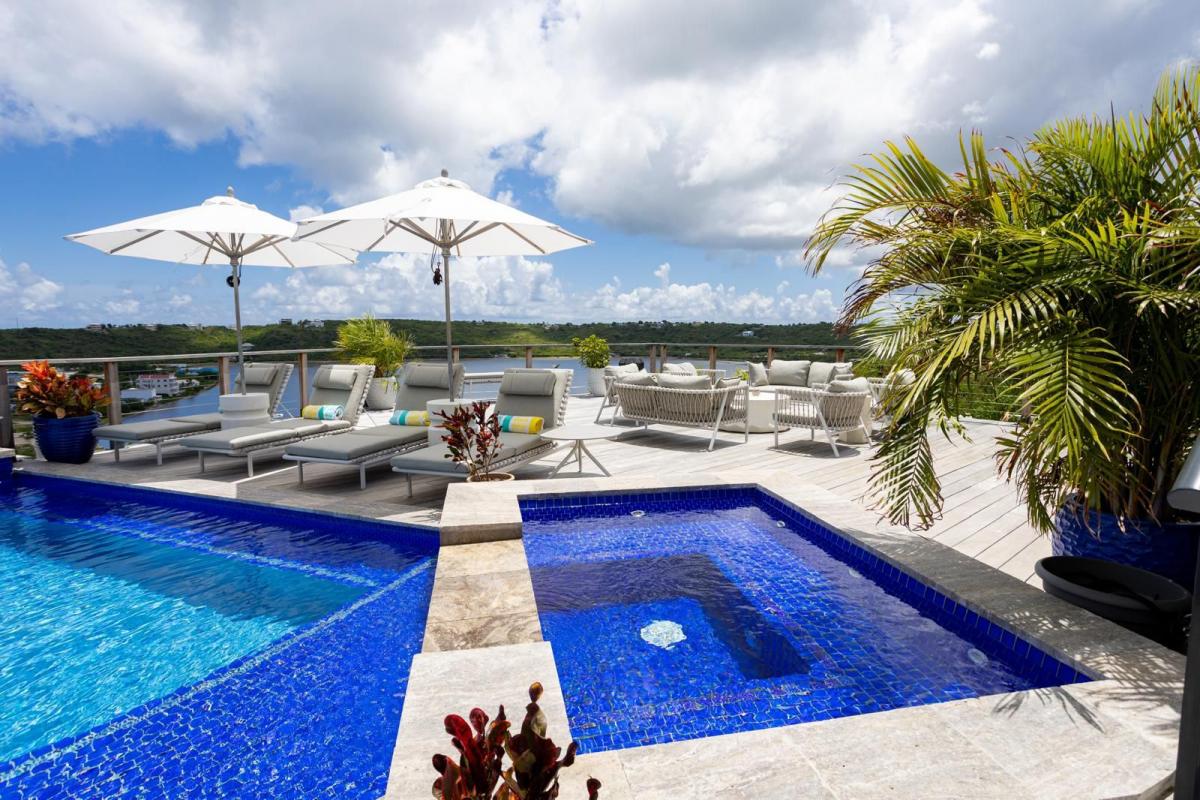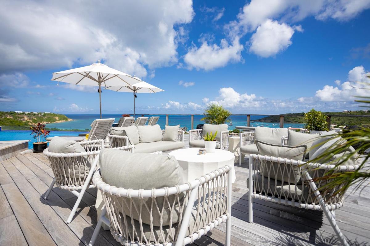 Next, descend to the expansive pool deck and take in the stunning views of Anguilla's northwestern coast from the infinity edge pool. Relax on comfortable, cushioned chaise loungers with umbrellas, enjoy sectionals throughout, and make use of the barbeque grill, full bar with an ice maker, and wine fridge.