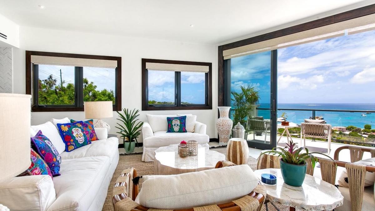 Agave Villa is a newly updated property that features a stunning kitchen and open-plan living and dining area that opens to a patio overlooking Sandy Ground Bay.
