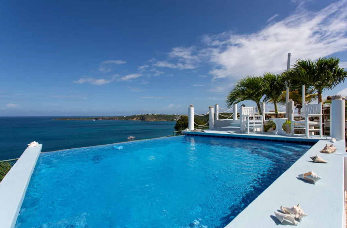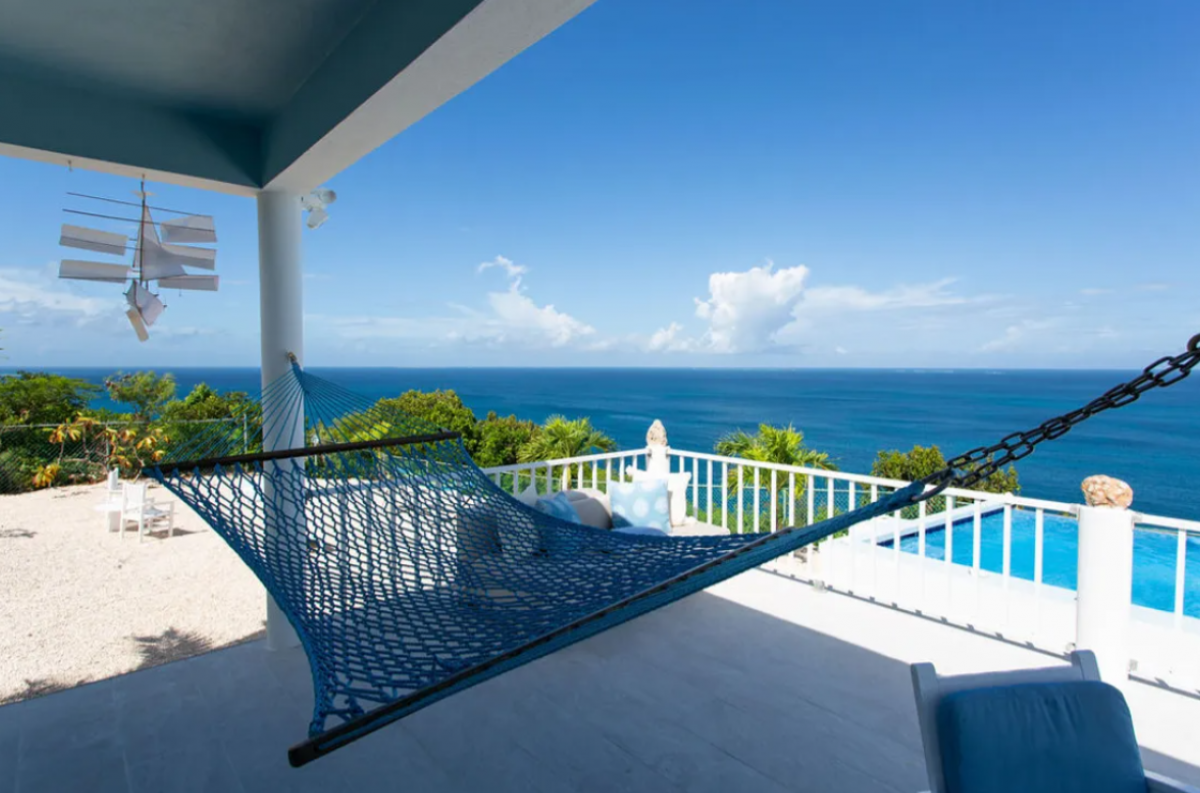 This renovated 4 bedroom, 3 bath property includes a professional grade kitchen in an open plan living/dining area that includes an expansive island, state of the art appliances, and abundant storage. The outdoor living space, which flows from this open living/dining area, provides some of the best views on Anguilla. Throughout the property, you will find hammocks, loungers, and chairs for endless spots to enjoy the views of the island's northern coast.