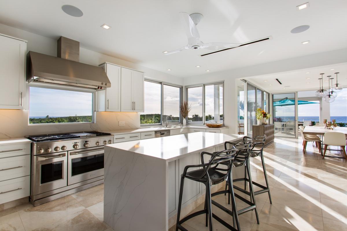 Six exquisite bedrooms with en-suites along with 2 separate powder rooms acommodate up to 12 guests. All of the bedrooms feature air conditioning, ceiling fans, and media centers.