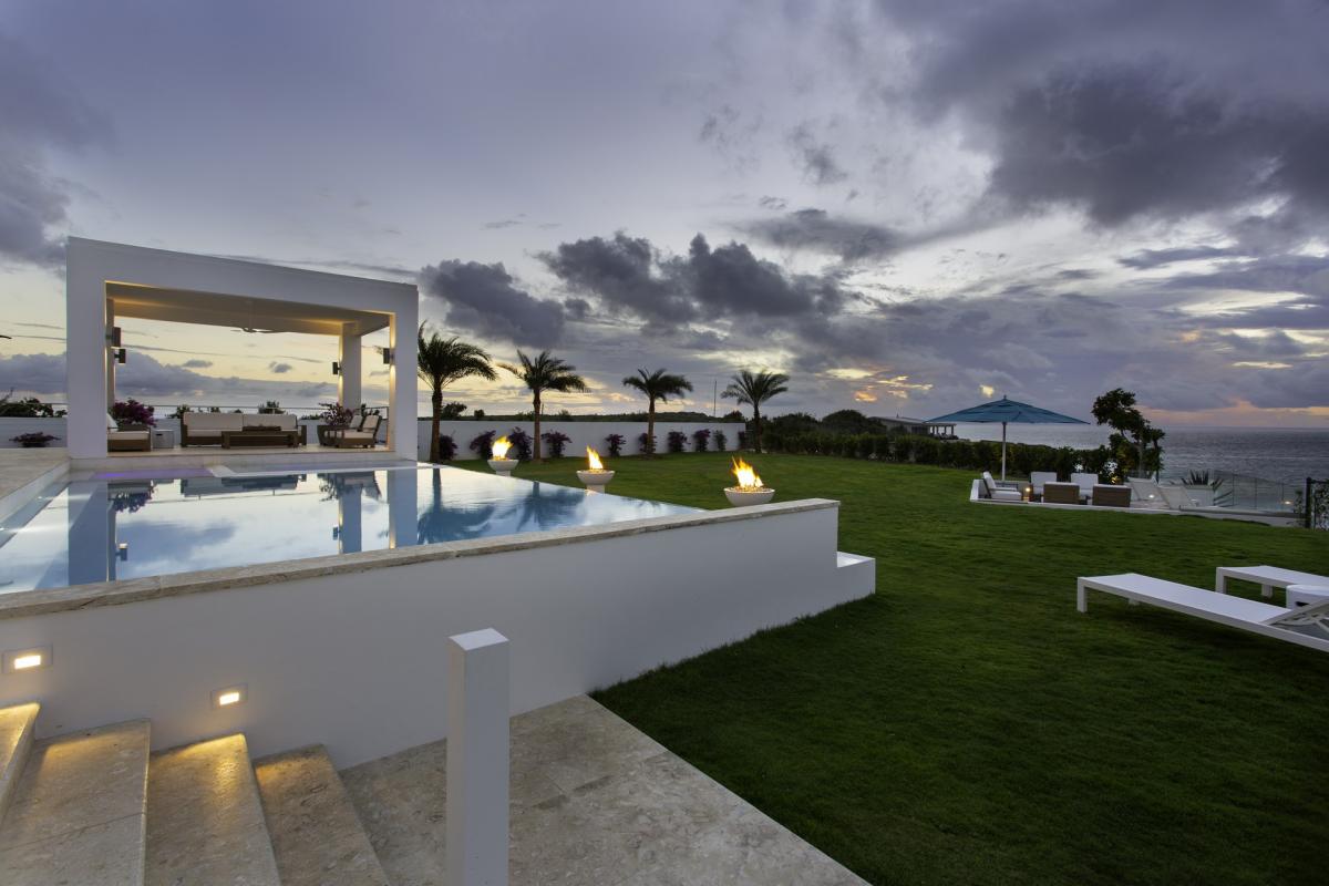 Welcome to Kandara! Located in chic West End, Anguilla. This 8,000 square-foot villa in Anguilla is nestled on 1 acre of land with tropical gardens and a front row seat to golden sunsets! The property offers ultimate privacy, with access cliffside to a small secluded beach cove. Kandara has a 360 degree angle of panoramic unobstructive views of the island of St. Maarten.