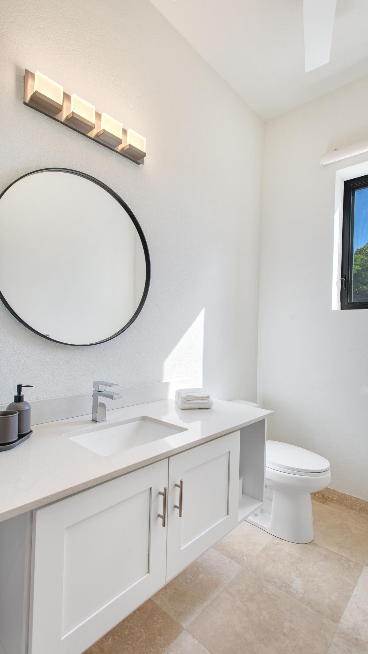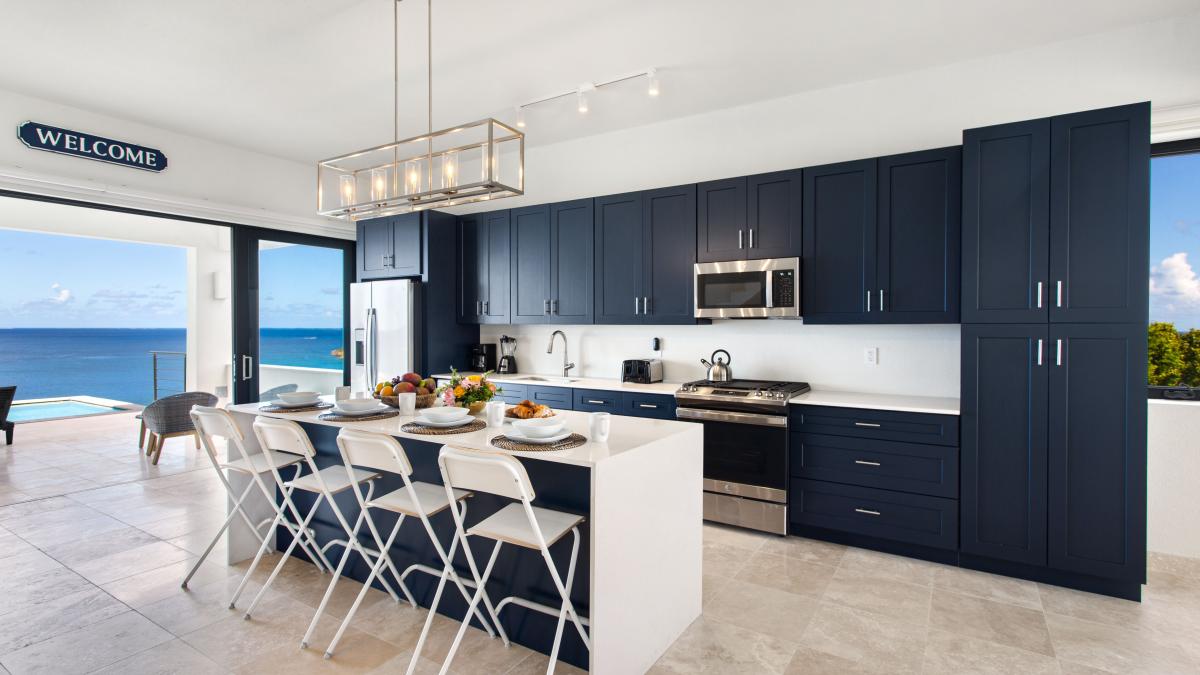 Little Bay View Villa is a newly constructed Anguilla rental with a modern design and clean lines and offers stunning views of Little Bay beach and its dramatic cliffs. The villa features a chef's kitchen, a large infinity-edge pool, a spacious deck, and three air-conditioned bedrooms with walk-in closets, ensuite bathrooms, and private patios. This villa is perfect for small families, couples, or friends seeking a centrally located retreat in Anguilla. Guests can enjoy snorkeling and cliff jumping at Little Bay or relax on the pool deck with mesmerizing sunset views while being close to Crocus Bay Beach for dining, water sports, and boating at Davida's restaurant.