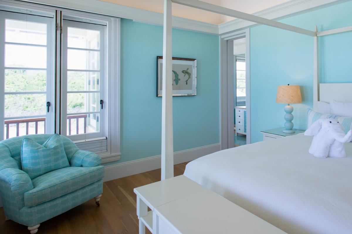Second Floor Jr Primary: king bed with child's daybed, ensuite bath with separate tub/shower, outdoor shower, veranda access, flat screen television.