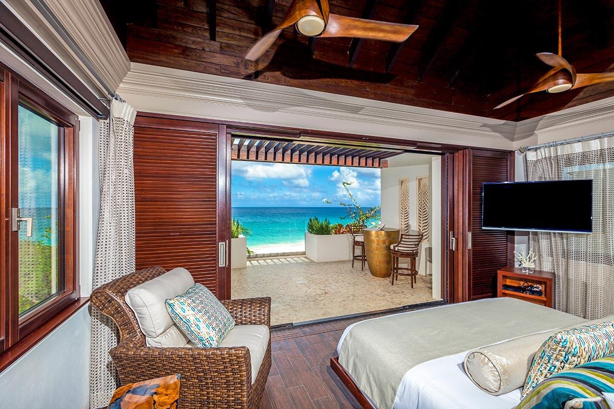 Primary 1: Ocean view with king bed, en suite bathroom with stand-alone shower and bathtub, separate outside shower, TV, terrace with heated plunge pool. Accessible to guests with limited mobility.