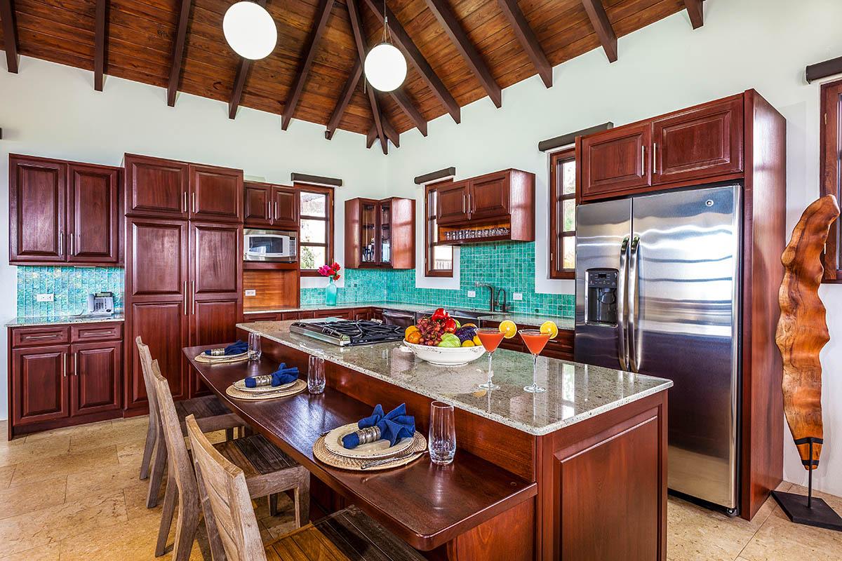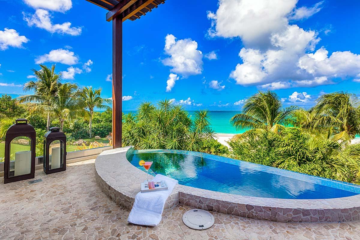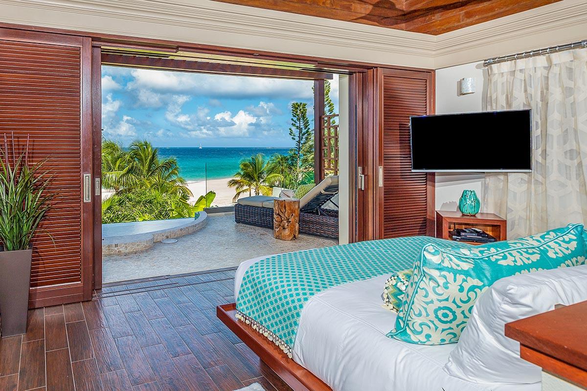 This incredible villa in Anguilla also has a unique large freshwater infinity pool with waterfall, a lighted Astroturf tennis court that doubles as a basketball court, a dedicated air-conditioned gym, a state-of-the-art golf simulator and a nine-seat movie theater with surround-sound and X-box console, and a Sonus music system throughout the villa. Sea scooters and stand-up paddle boards, beach volleyball and kayaks are all part of the fun on the beach. And Nevaeh's large staff is dedicated to making your visit a dream come true!