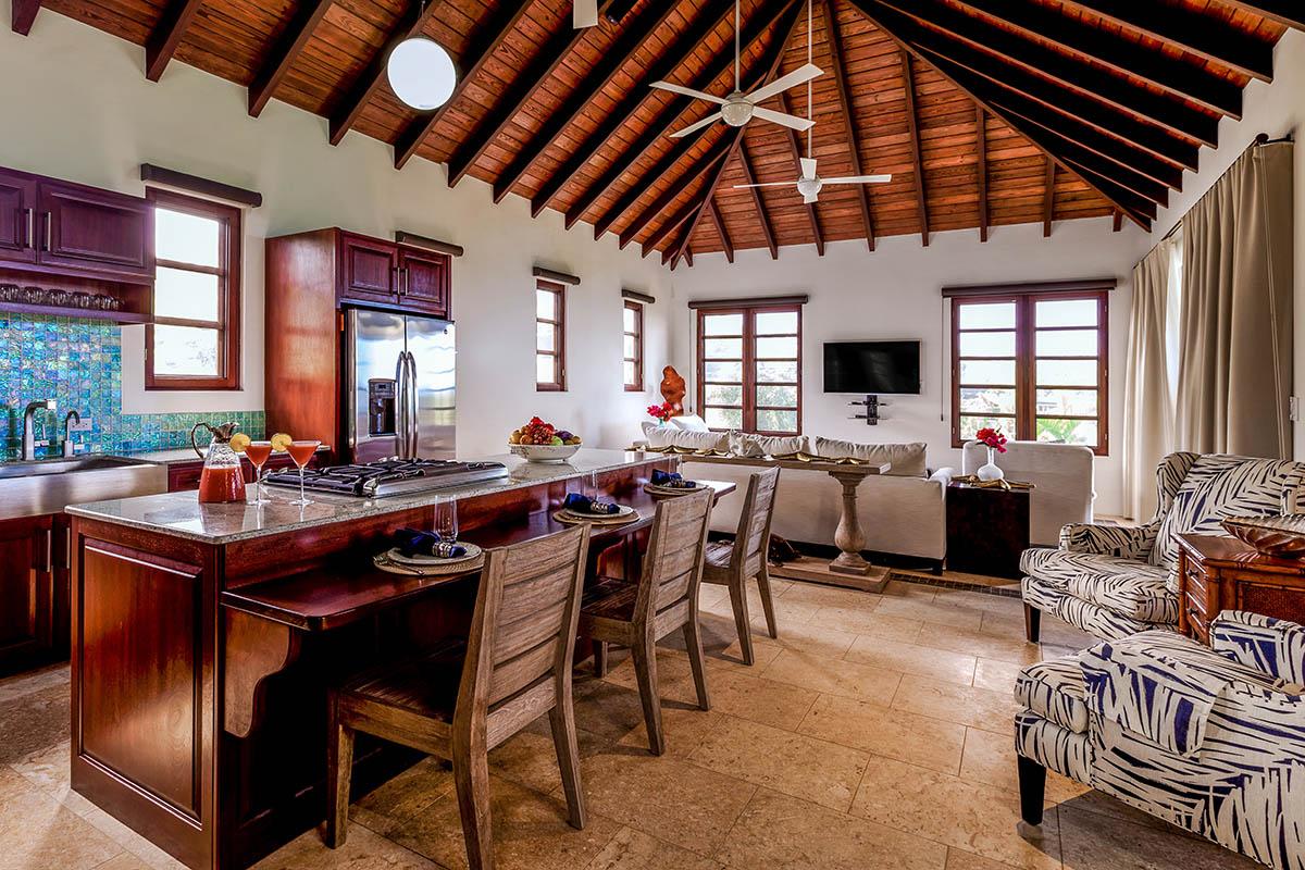 full bathroom and separate powder room shared with bedroom 7, stand-alone shower and bathtub, TV, terrace- Bedroom 9: Cabana bedroom with king bed, ensuite bathroom with stand-alone shower, TV, wrap-around terrace with garden and ocean views