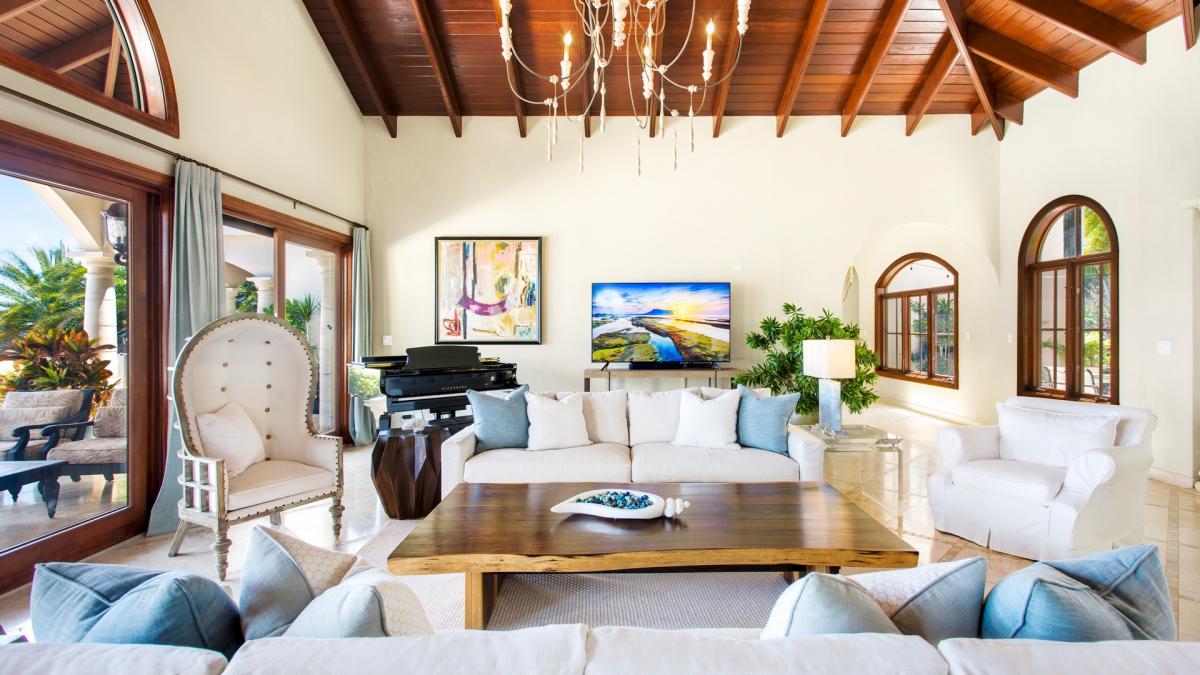 It boasts magnificent views of the Atlantic ocean with ever changing shades of blue. The first level of Sandcastle has two air conditioned bedrooms and children's playroom with magnificent sea views and ensuite bathrooms. There are large areas for entertaining outside around the infinity pool or at the gazebo with its BBQ, and a wonderful view of the beach and the sea beyond. One can also entertain more formally inside in the air conditioned great room with its adjoining dining area. There is a media room with a computer area just off the great room. The second level has a large grand master bedroom with ensuite bathroom with a bathtub and private outdoor shower, and a large balcony overlooking the beach and sea, along with an en suite fitness center. There is also a master bedroom on this level with ensuite bathroom and shower and a large balcony overlooking the sea.