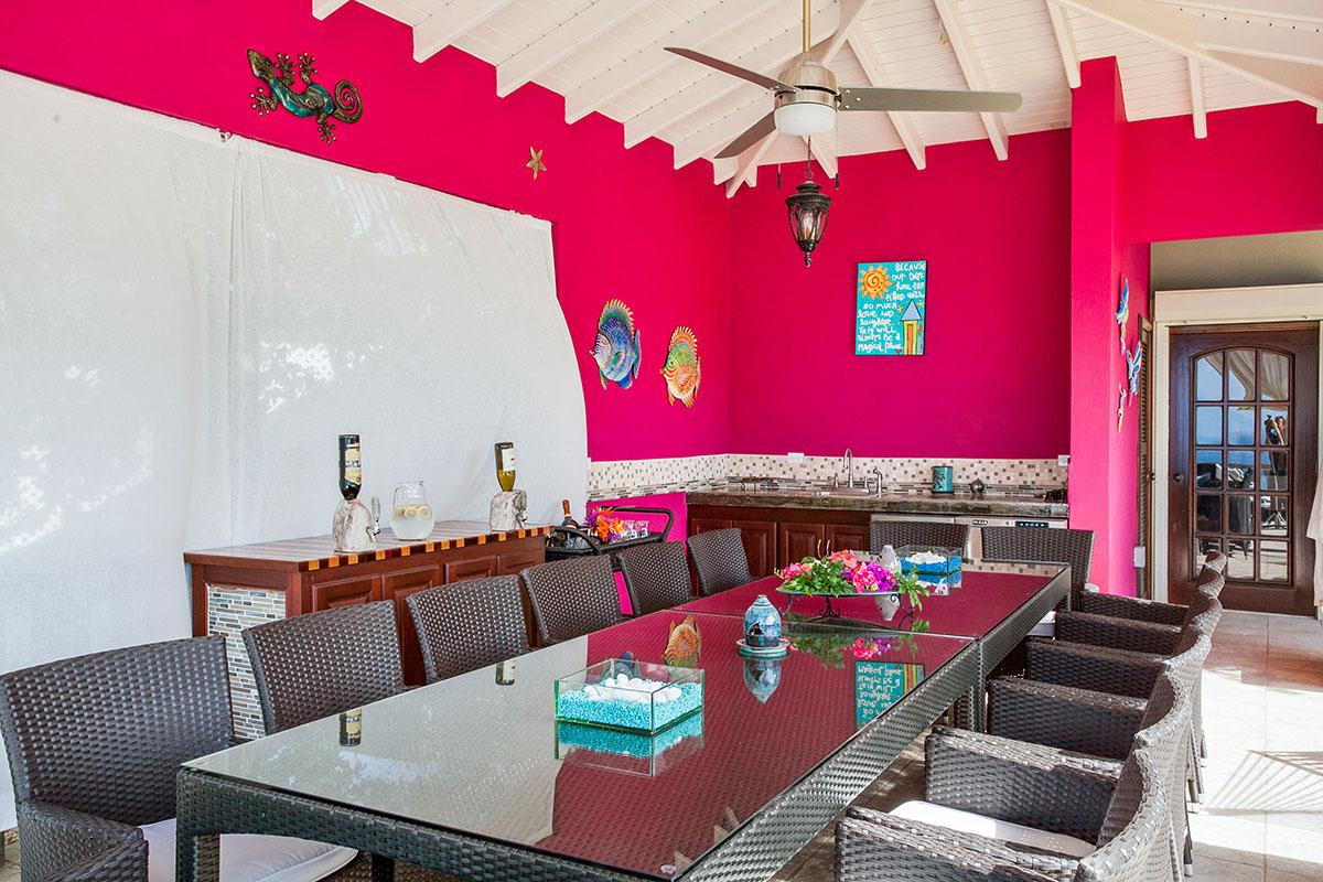 Both the four main-house bedrooms and the four individual bedroom suites have en-suite bathrooms, air conditioning and luxury organic toiletries. Several of the main-house bedrooms have terrace access or ocean views, and all four separate suites have direct terrace access, lounge and dining areas and kitchenettes. The combination of a house and separate suites means the estate can accommodate families with children, multiple generations, groups of friends or even couples looking to relive their honeymoon. In keeping with the overall feel of Caribbean elegance, each suite has its own layout and color palette, giving each the charm of your own private retreat.