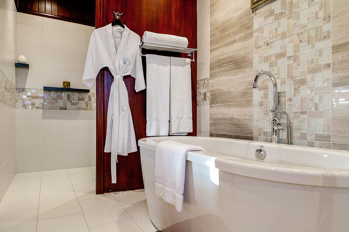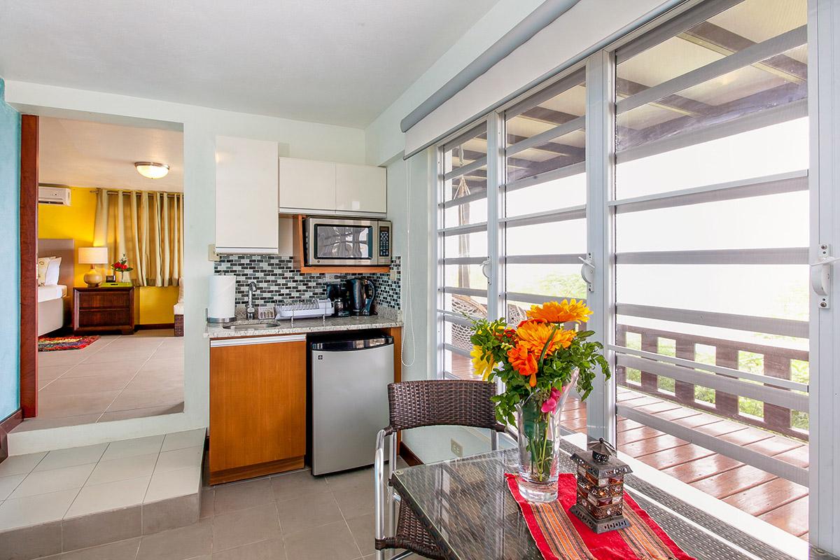 - Bedroom 7: Queen bed, en suite bathroom with stand-alone shower, TV, lounge/dining area, kitchenette, AC, eerrace, ocean view