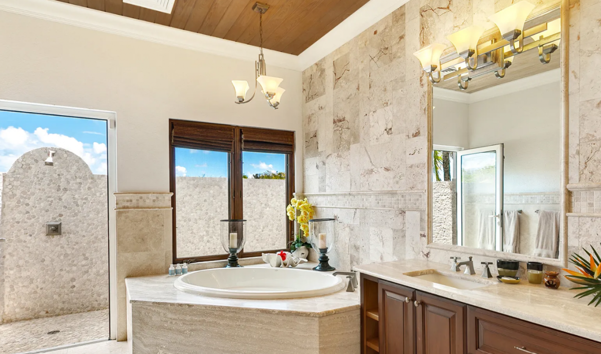 Spanning over 11,000 square feet, Villa Azul is a striking blend of Moroccan-inspired design and Caribbean luxury. Just steps from the untouched white sands of Limestone Bay, this five-bedroom estate offers a seamless connection between indoor elegance and outdoor beauty. The open-plan living and dining area, crowned by a dramatic vaulted dome ceiling, flows effortlessly out to a spectacular two-tier infinity pool with panoramic views of the turquoise sea.