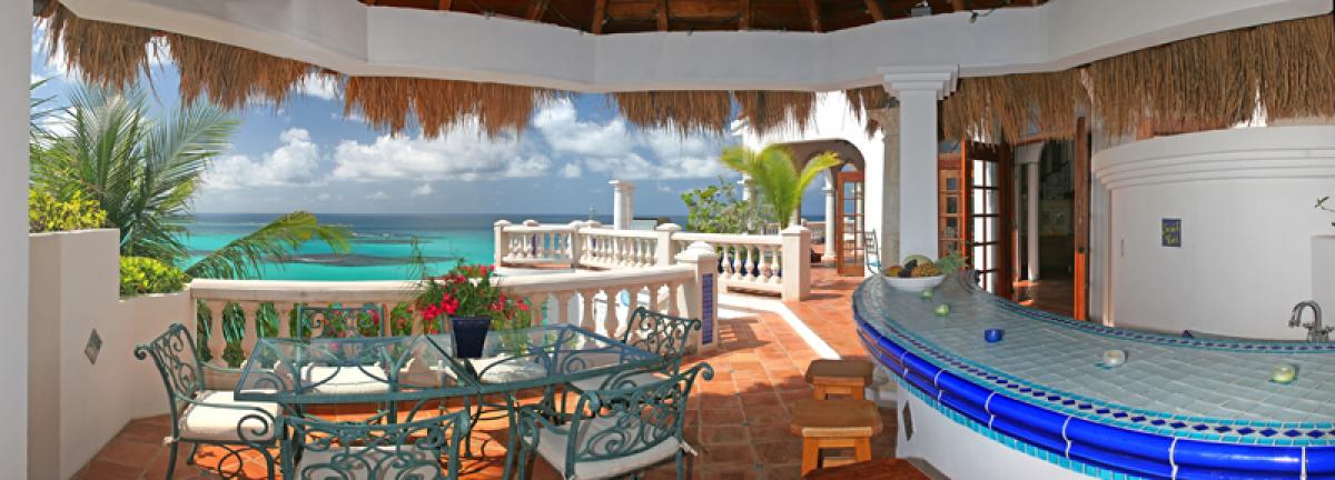 By the amazing natural beauty, privacy and total comfort. The coveted location, exquisite attention to detail and tailoring to the desires of our guests has cumulated in the perfect holiday retreat. The entire design of the villa was developed to transform and relax you. From the precise placement of the walls of glass that open to allow the tropical scented trade winds blow through, to the enveloping furnishings, you will feel the stress of the real world melt away as you take your first steps through the eighteenth century hand carved doors. Five spacious, sumptuously appointed bedrooms are havens of ultimate comfort and supreme elegance, fully air-conditioned with ceiling fans and Italian handcrafted Egyptian cotton linens. You and your guests will enjoy the amazing vanishing edge pool, large covered and open-air decks, heated spa, romantic thatched roof bar and steps to the sea. All bedrooms face the soothing azure ocean and open to a deck or terrace. Villa Azure is one of the prime villas in Anguilla. Contact Villa Luxe for your Anguilla villa rental.