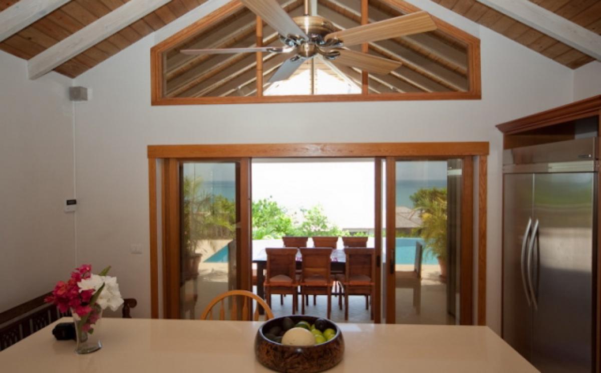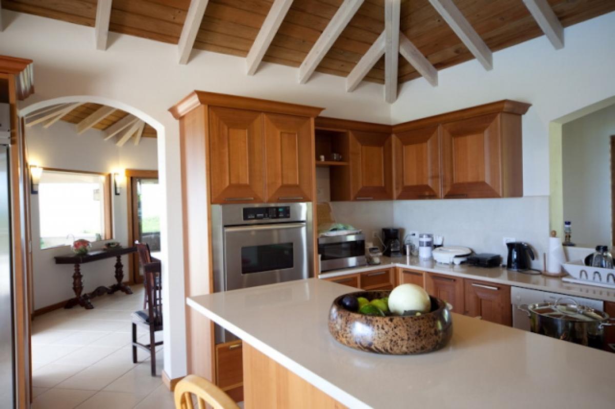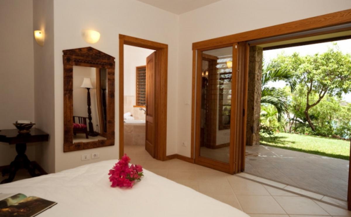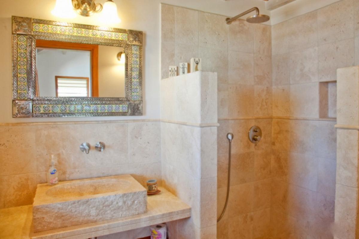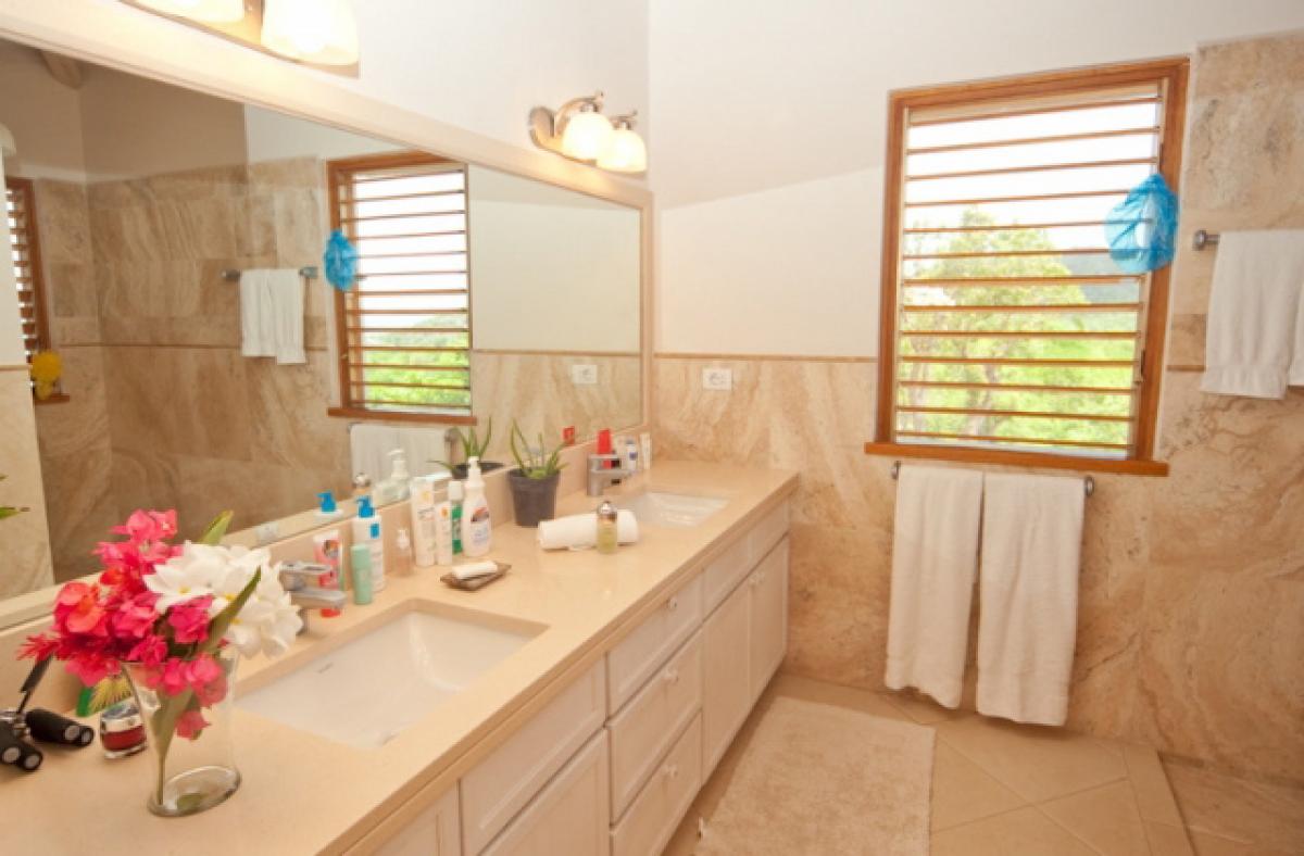 Villa Waranama is strategically located on one of the highest points of the beautiful Galley Bay Heights, offering breathtaking views of Galley Bay and Deep Bay. This villa is at the center of a luxurious village exhibiting some of the finest architectural designs. Exquisitely designed and immersed in a lush tropical garden filled with colorful flowers and exotic plants, Villa Waranama is the perfect luxury retreat. Villa Waranama has four gorgeous bedrooms. The Master Bedroom has been conveniently tucked away from the other three bedrooms, guaranteeing total privacy. It is furnished with a queen size bed, side tables and an amazing drop lid desk conveniently added for your writing and planning needs. The other three bedrooms are fitted with comfortable double size beds, side tables and spacious walk-in closets. Each bedroom is artistically furnished to add distinct flavour to the villa, making each room one of a kind. Their private bathrooms add to this particular distinction by displaying unique fittings enhancing the individuality of each living quarter. The bedrooms are all air conditioned and equipped with ceiling fans and French doors, guaranteeing their coolness at all times of day or night. As you turn in for the night you might just enjoy a little nightcap comfortably sitting on your bedroom patio admiring the starry tropical sky, or if you are staying in the lower level bedroom, you might just venture into the beautiful tropical garden, effortlessly strolling on its delicately lit stone walkways.