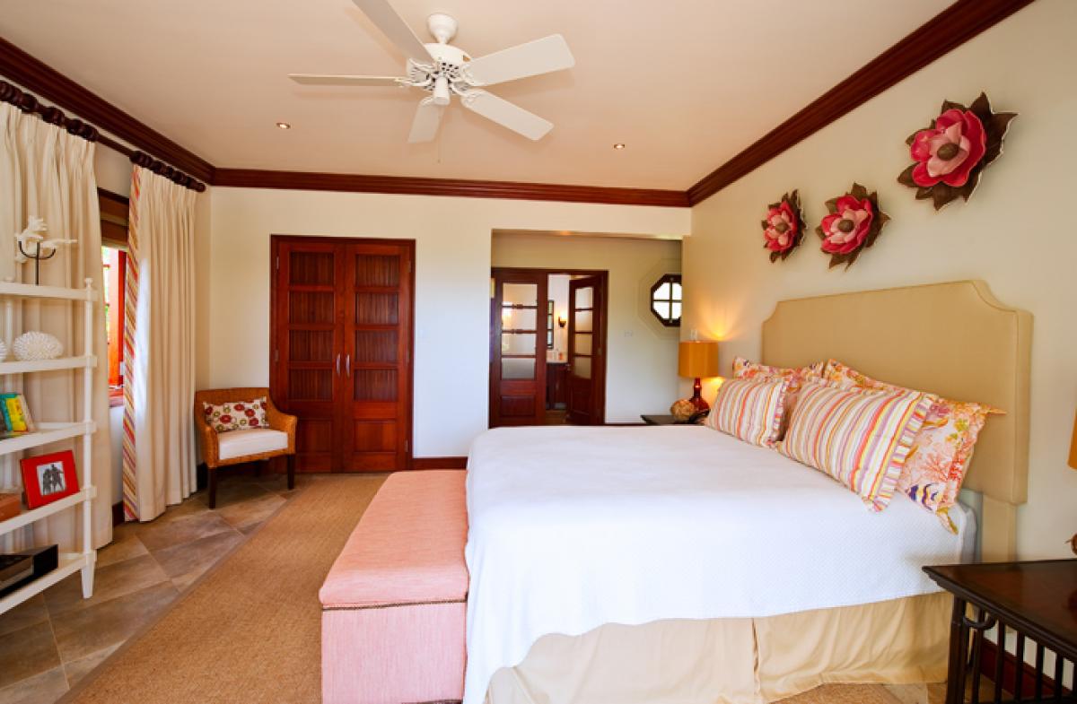 The master suite, which encompasses the whole upper level, is pure indulgence with an ornately decorated double bathroom containing a lavish walk in shower that leads out onto the private patio containing an amazing outdoor tub. The private patio overlooks the pool area and gazebo and offers one of the best views from the property, with a gully (one of Barbados' stunning features) running along the north side and the coast to the west.