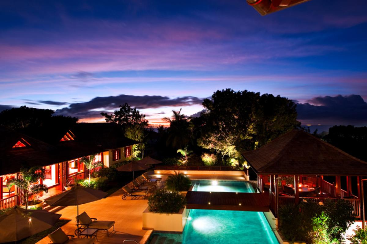 As you enter the grounds a lovely fountain greets you and as you walk through the entrance to the villa you are further soothed by oriental koi ponds gracing either side of the wooden walkway. A large raised dining area that comfortably seats ten also includes a full wall water feature and is open along one side allowing for glorious views as you dine. The dining area leads down to a comfortable seating area, also open along one side offering views of the pool area, which in turn leads to a second comfortable seating area where you can relax with a little music or a movie.