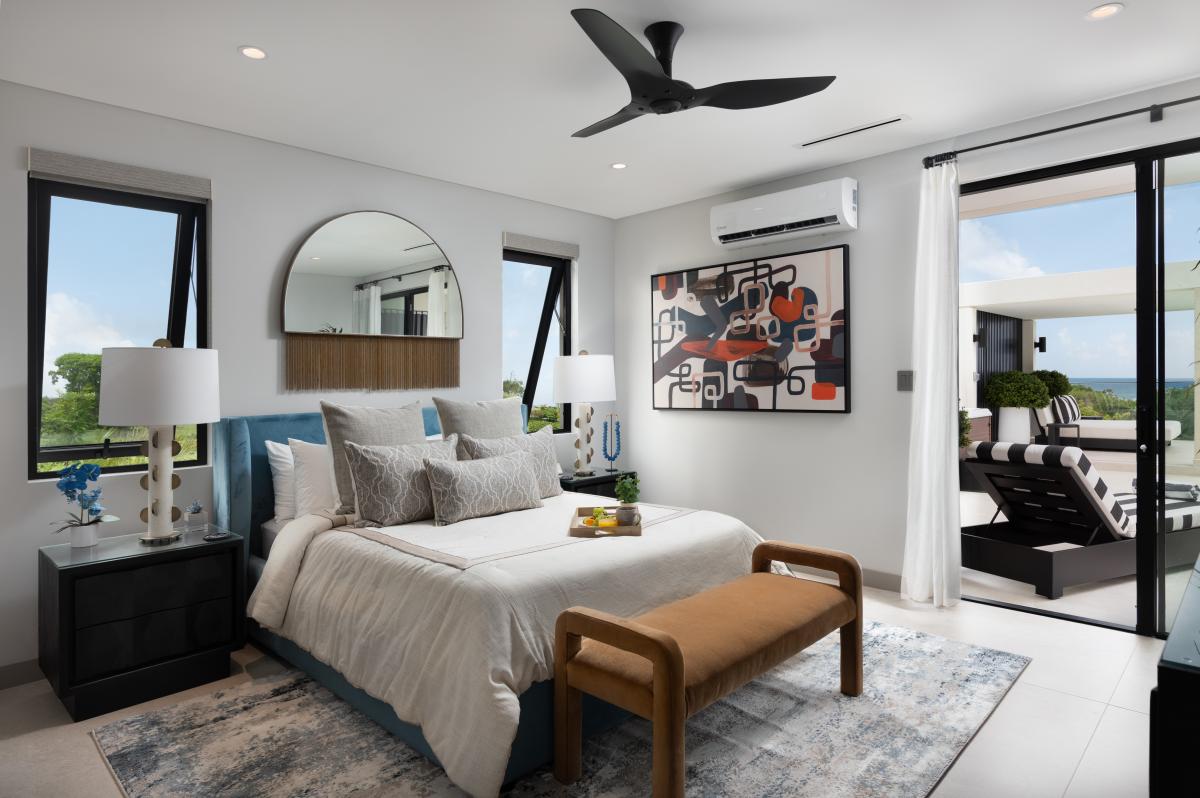 Each of the four bedrooms features its own character, with modern finishes, vibrant accents, and private patios or terraces designed for quiet mornings or unwinding after a long day in the sun. Two bedrooms are located on the ground floor and two upstairs, where you’ll also find a secondary lounge and a private office—ideal if a little work needs to happen during your Barbados luxury villa stay. Thoughtfully designed for adults, the home blends comfort and style in every corner.