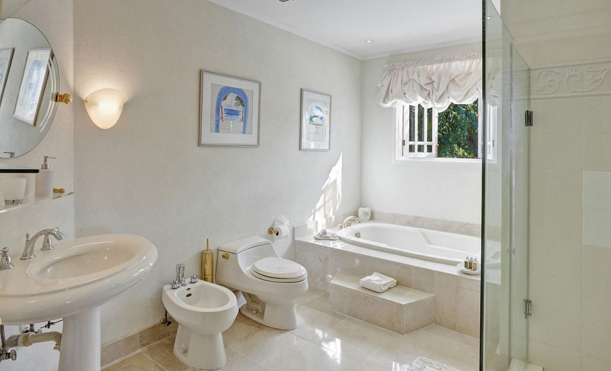 Primary Bedroom 2: This room is equipped with a king-sized bed, AC, a smart TV, a view of the sea, and an ensuite bathroom with a shower and bathtub.