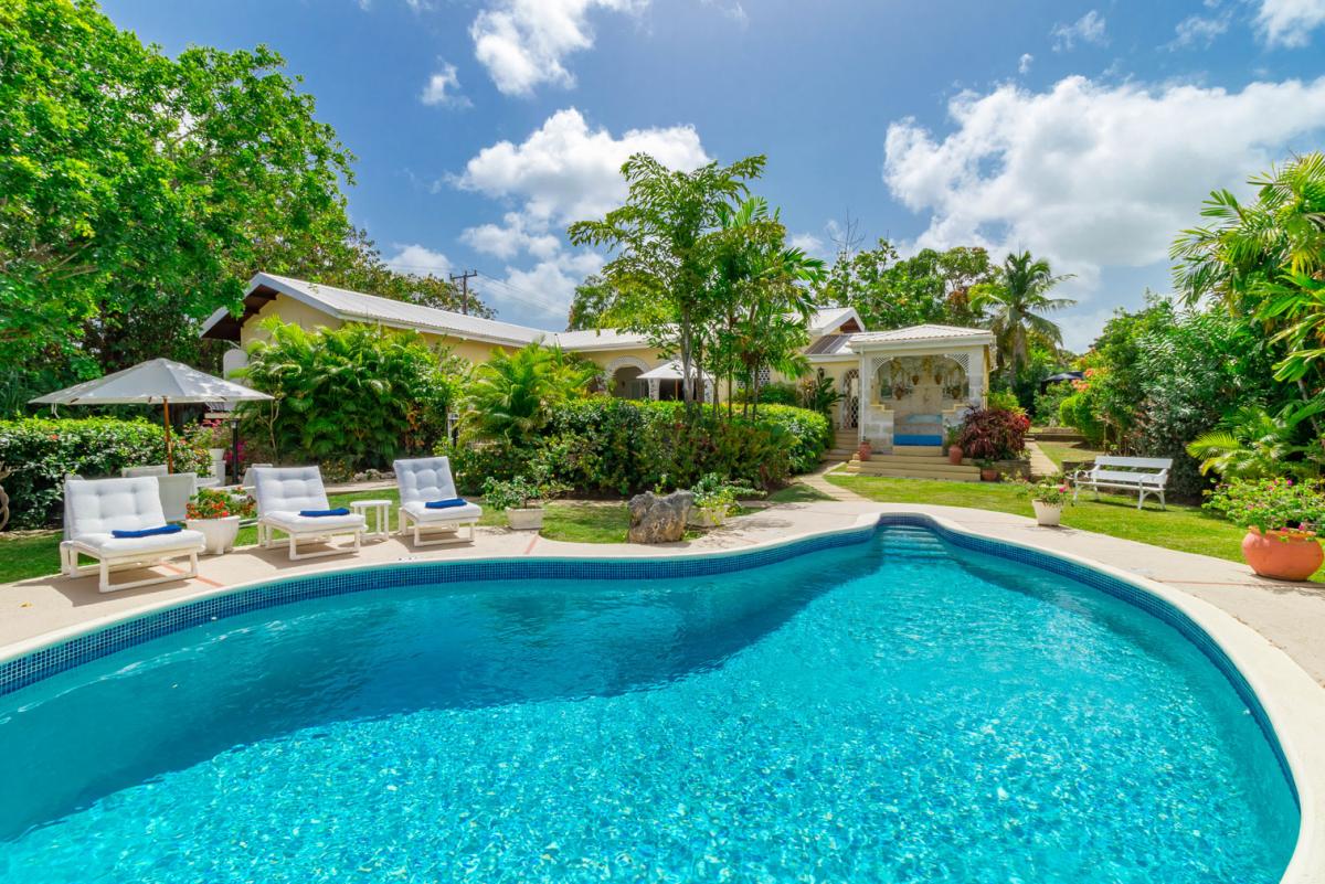 Casabella, a 4 bedroom villa with Caribbean Sea views. Situated on a breezy ridge front on the West Coast of Barbados, the interior features a living room, formal dining room, fully equipped kitchen and 4 en-suite bedrooms all with air-conditioning. The Master benefits from a private balcony with stunning sea views. The spacious grounds include a private swimming pool, Jacuzzi, covered terrace with alfresco dining table and lounge all surrounded by lush topical gardens.