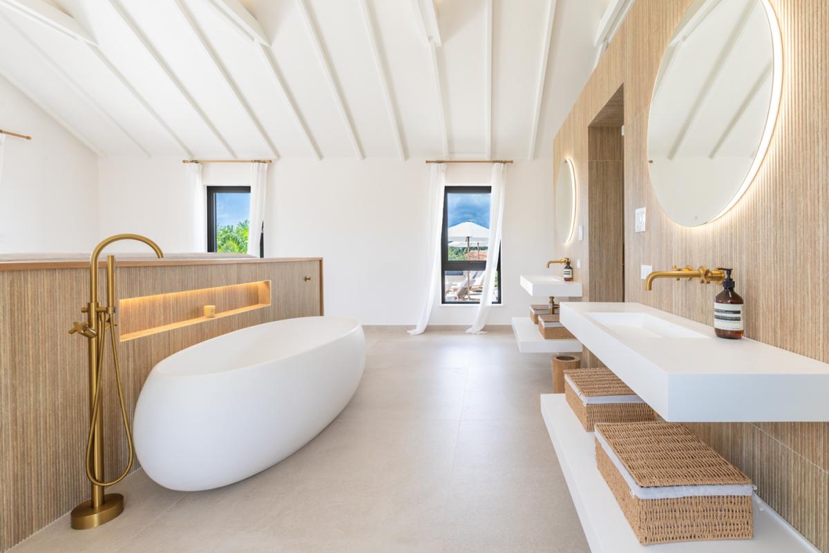 Flowing effortlessly from the outdoor oasis, the villa’s open-plan living area and modern kitchen blend sophistication with natural beauty. The kitchen is designed for both function and social connection, featuring a breakfast bar and a spacious dining area perfect for shared meals and gatherings. Meanwhile, the guest cottage serves as a private sanctuary, complete with its own living area and compact kitchen, offering added independence and comfort for visitors. Every element of Cloudbreak Villa has been carefully curated to deliver a seamless balance of tranquility, elegance, and modern convenience. With its serene setting, luxurious amenities, and breathtaking surroundings, Cloudbreak provides an exceptional escape where guests can relax, recharge, and create lasting memories in a truly idyllic environment.