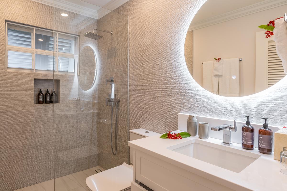This luxurious and stylishly furnished beachfront property is the perfect place to escape from the outside world. The property has four air conditioned bedrooms, all of which have bathrooms en suite and are located on the upper floor of the property.