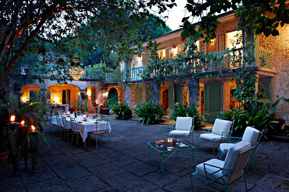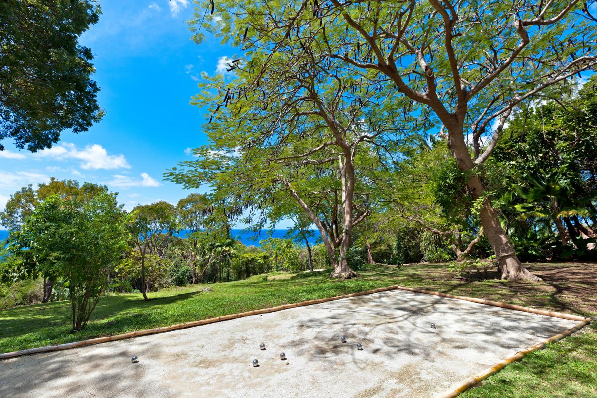 The grounds, initially designed by Todd Langstaffe-Gowan, have been updated for optimal beauty and relaxation. The estate includes a chef, Andy Taylor, offering guests an exquisite dining experience. Ideal for large families or groups, it combines traditional charm with modern amenities and is available for villa rentals. Guests also have access to a nearby beachfront day house for added enjoyment.