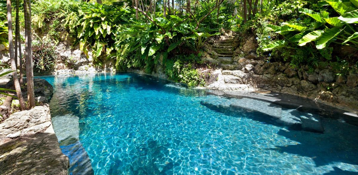 Located on 11 acres in northern Barbados, Fustic House is a luxurious 18th-century coral stone estate designed by Oliver Messel. This Barbados villa offers a blend of indoor and outdoor living with lush gardens, a lotus-filled lake, and a natural lagoon-shaped pool. It features seven luxury suites across four wings, providing over 13,000 square feet of living space with stunning Caribbean coastline views, make for a memorable Barbados vacation.
