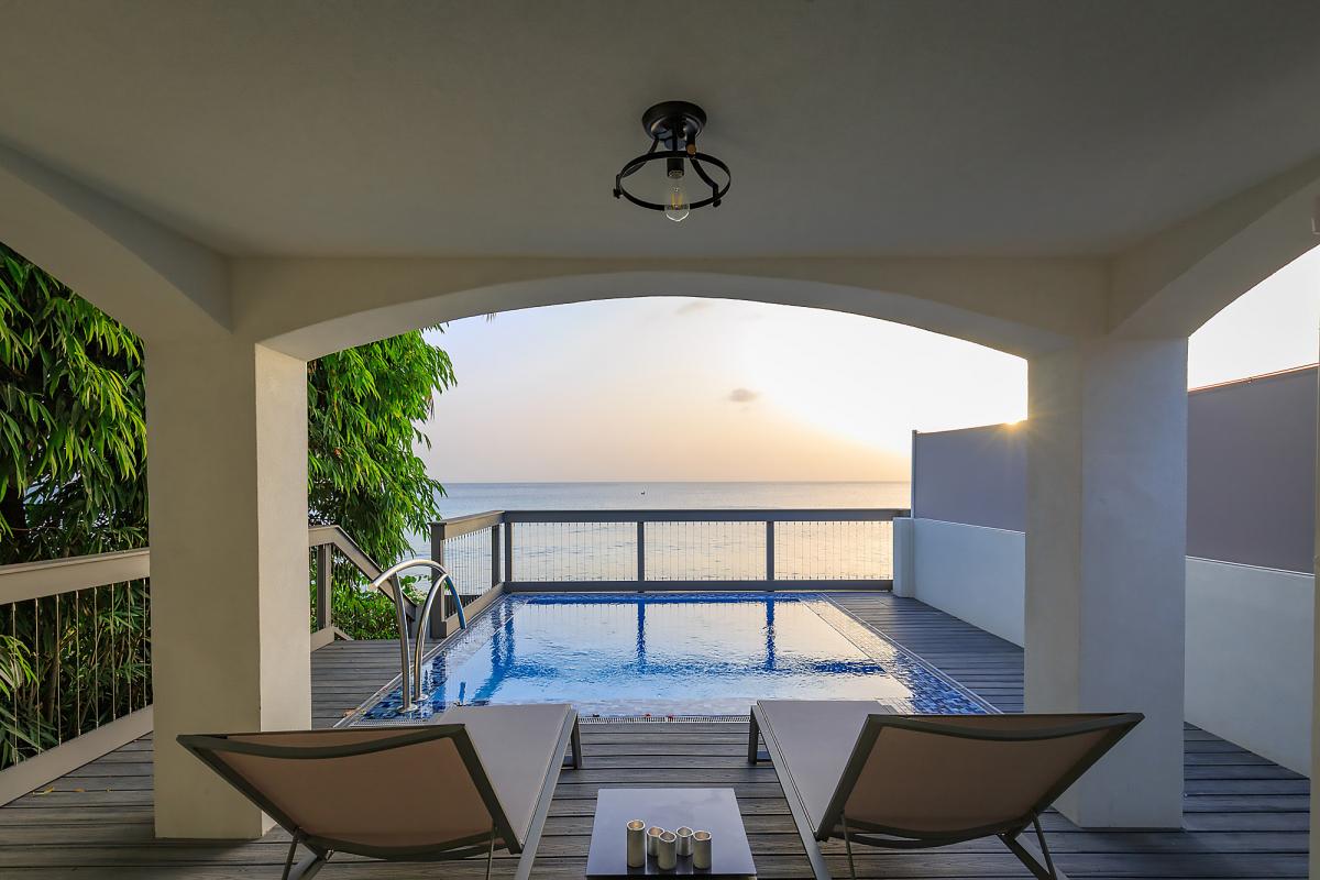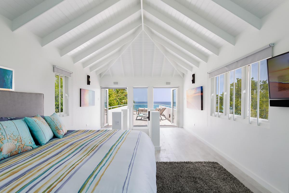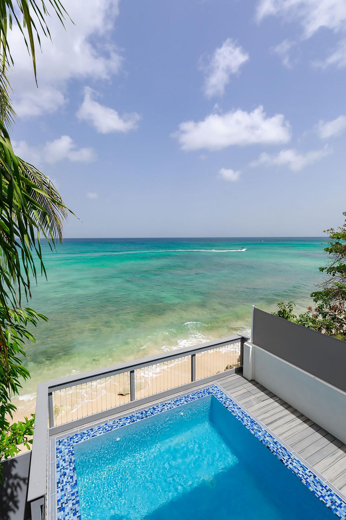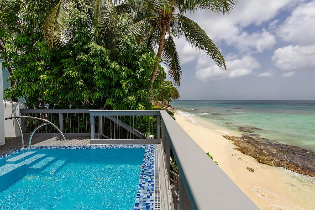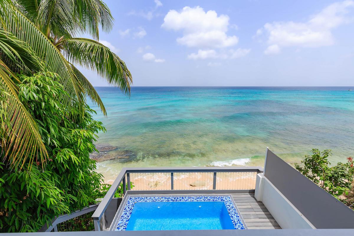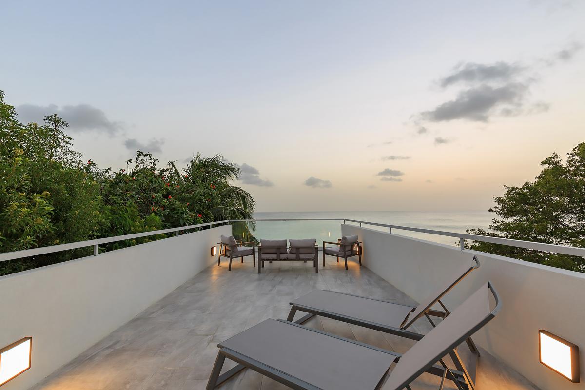Imagine Villa is a contemporary 4 bedroom beachfront villa on the West Coast of Barbados. This 3 storey property has been newly renovated with a modern luxury design and stylish interiors. A star feature is the new penthouse suite, a spacious room with vaulted ceilings, plenty of natural light and floor-to-ceiling glass doors which lead out onto a private rooftop terrace with panoramic sea views – the perfect place to sunbath, relax or enjoy a sunset with friends. The villa also features an open plan living and dining room, fully equipped kitchen, Master suite and a further two guest bedrooms. All bedrooms have en suite bathrooms, AC and flat screen TV’s. The Master suite features a glass balcony overlooking the Caribbean Sea. The outdoor space benefits from a sun terrace with a salt water mirror pool and direct beach access.