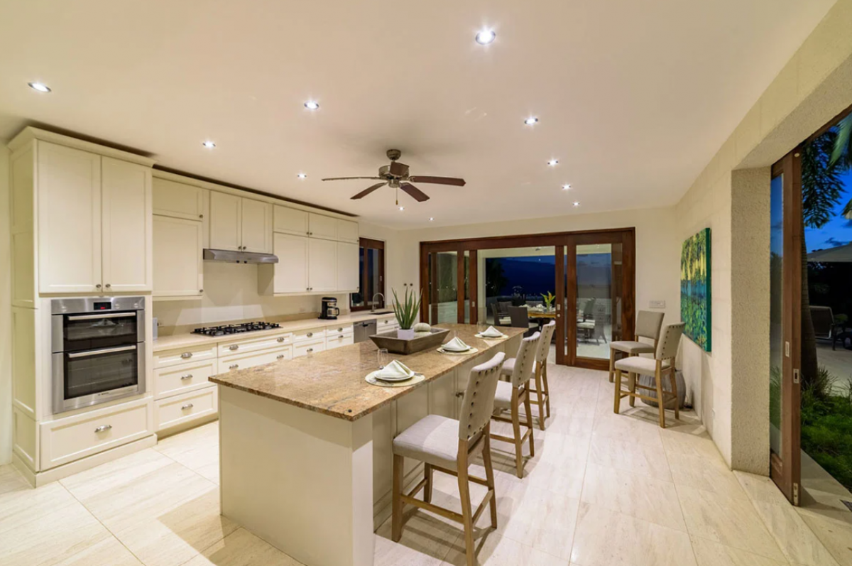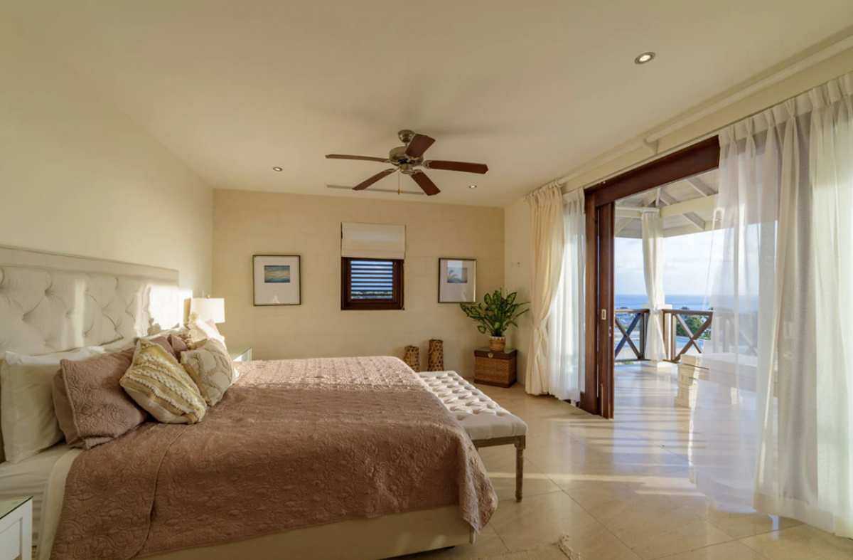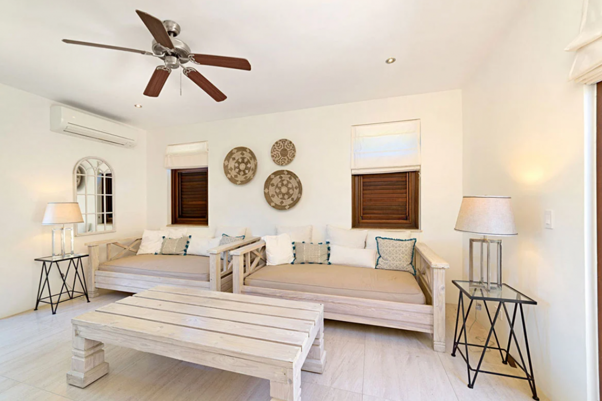This Barbados villla rental, spread over various elevations, features eight bedrooms, making it an ideal choice for business retreats or group vacations. The south wing on the upper floor houses two bedrooms, each with ensuite bathrooms. Similarly, the north wing is composed of two bedrooms with ensuite baths as well. The ground floor is home to the main bedroom with an ensuite bath, alongside another room with twin beds , complemented by a full bathroom in the nearby study. The basement apartment provides the remaining two bedrooms, one with a king bed and one with two single beds that can be combined to create a king.