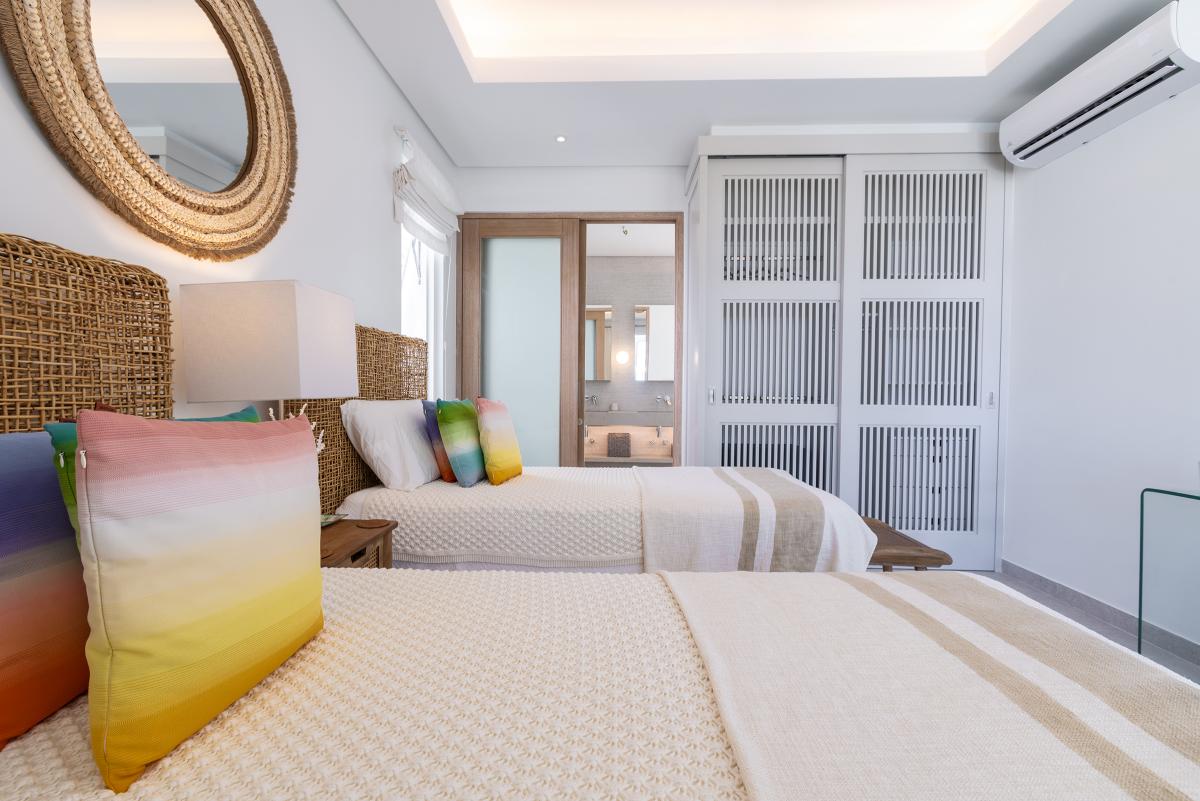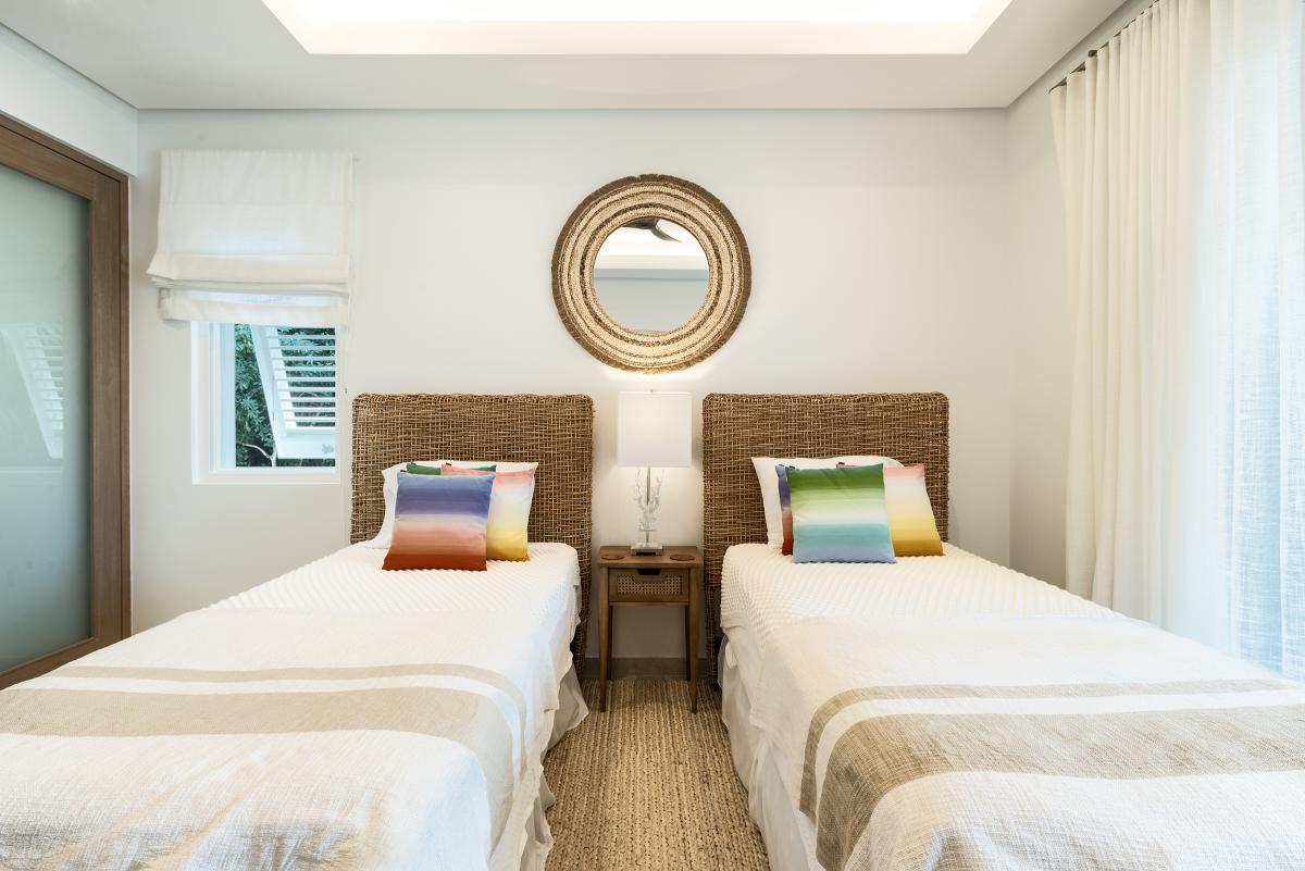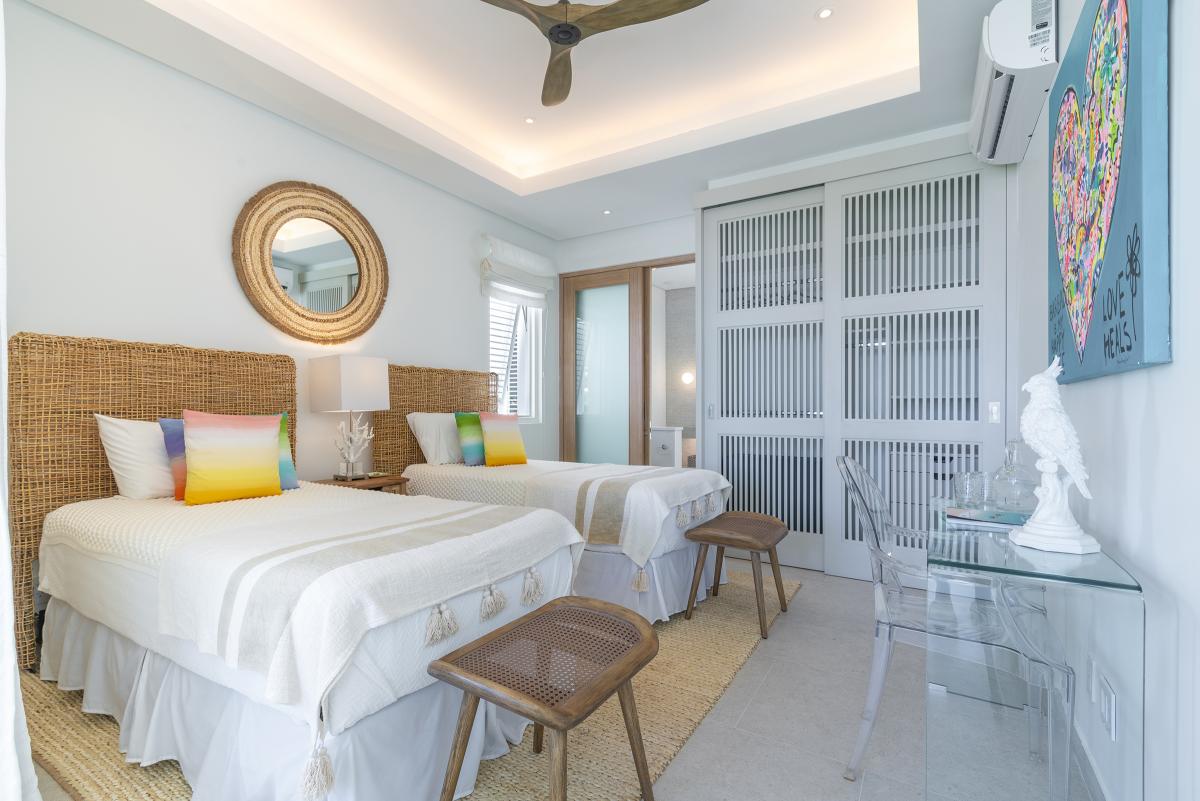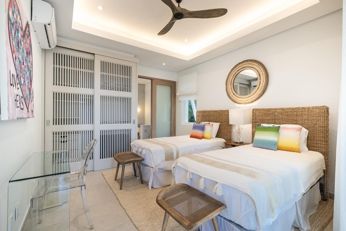 Bedroom 4: Two twin beds (convertible to King), ensuite bathroom with walk-in shower, AC ceiling fan, garden view