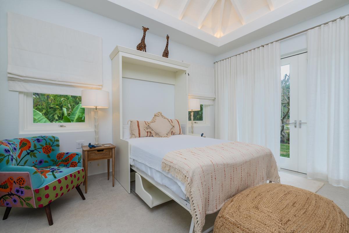 Bedroom 5: Two twin beds (convertible to King), ensuite bathroom with walk-in shower, AC ceiling fan, garden view