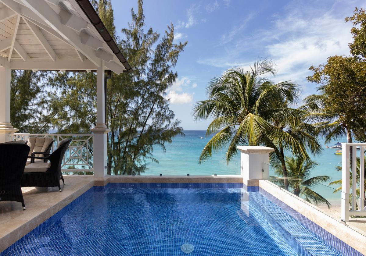 La Mirage, a luxury beachfront penthouse apartment on the West Coast of Barbados. Offering spectacular Caribbean Sea views with 4 en-suite bedrooms and high-end finishes throughout. This beautiful penthouse has an open floor plan featuring a fully equipped kitchen, spacious living room and an expansive covered terrace which benefits from a plunge pool and lounge. Amenities at Old Trees provide free-form swimming pool, lush tropical gardens and direct beach access. Fantastic location just minutes away from the West Coast’s best dining, nightlife and shopping.