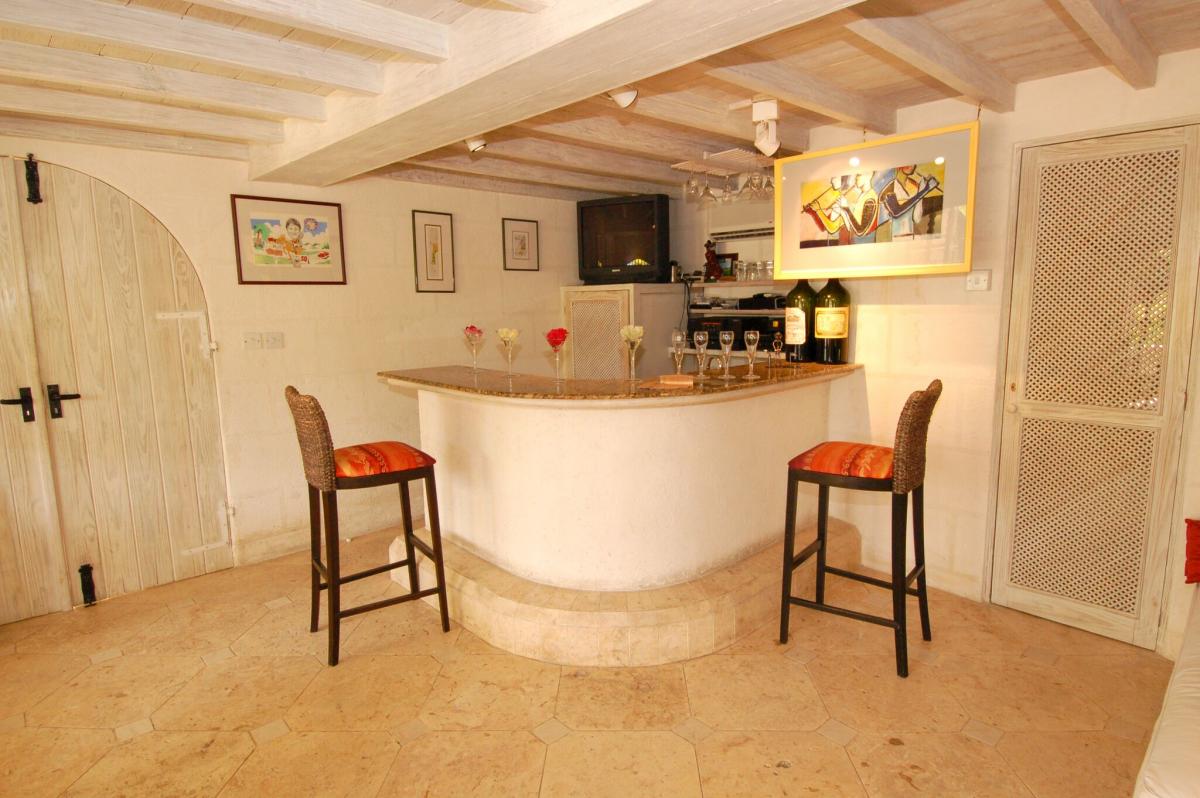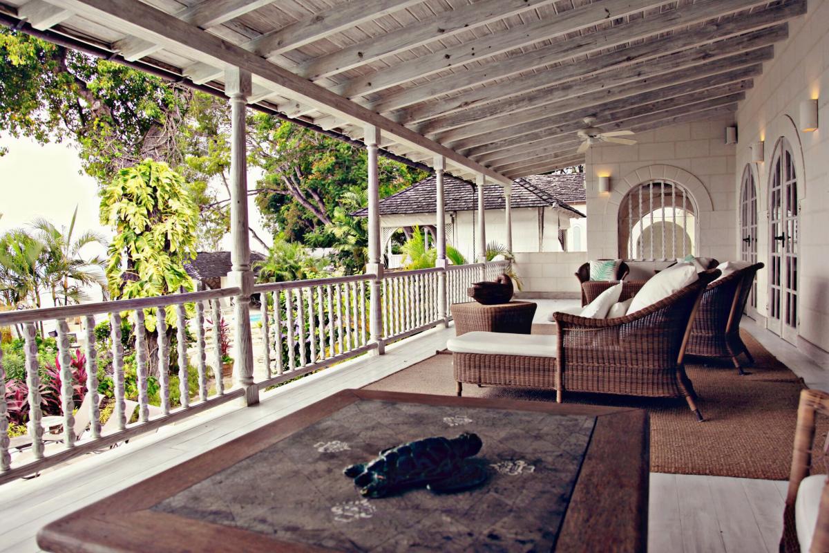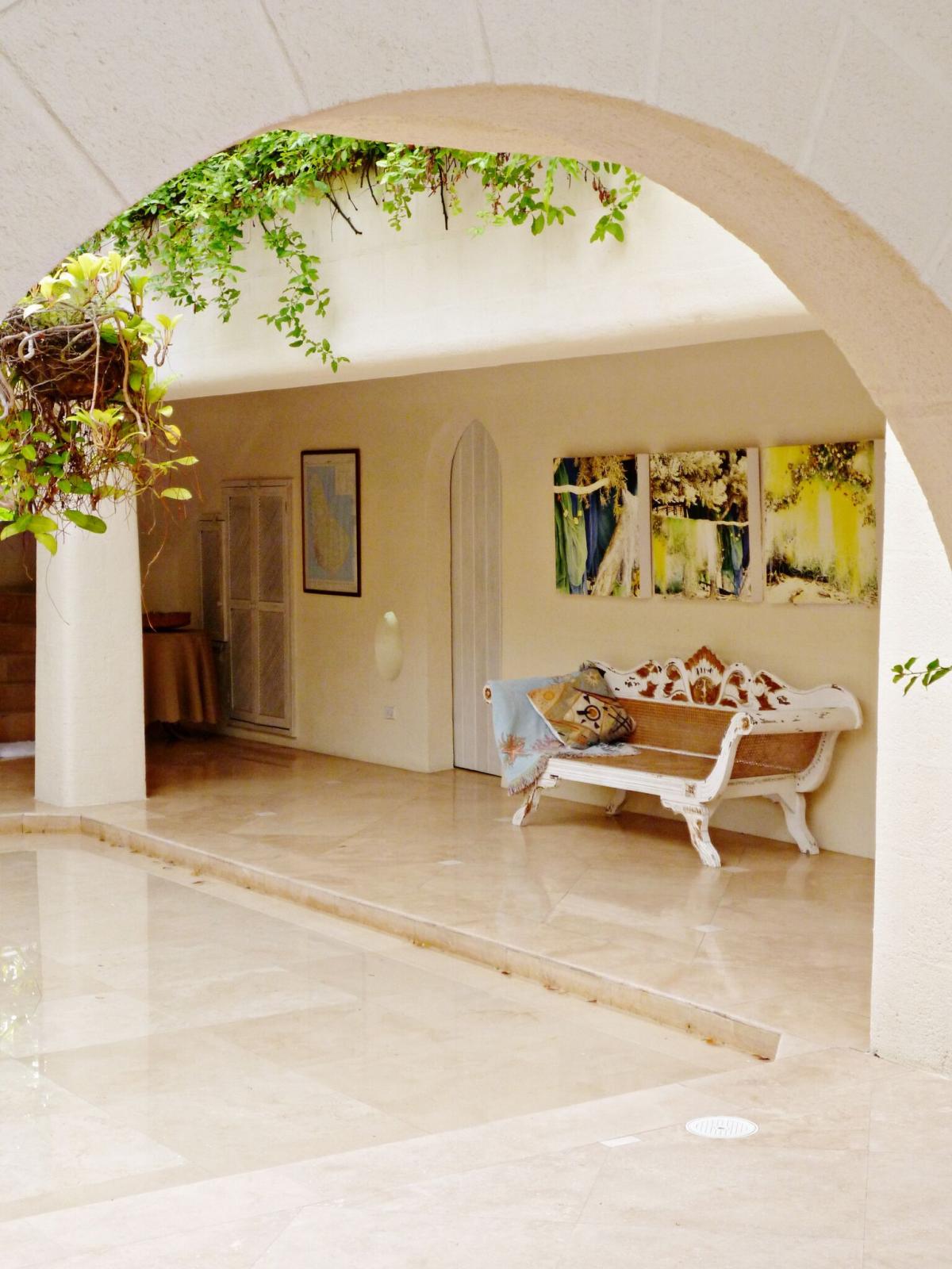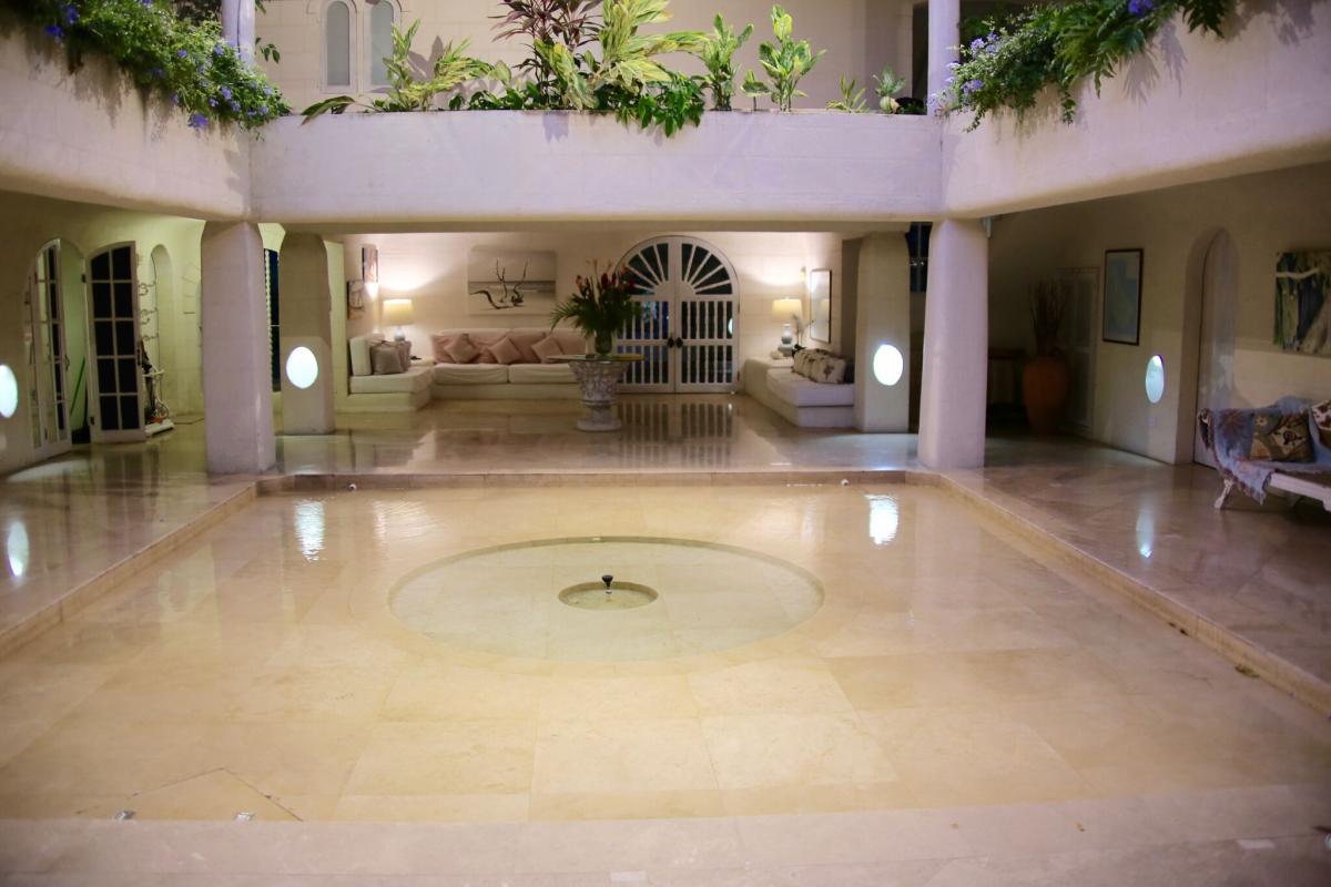 Landfall House, the distinctive, two story, six bedroom property, offers the ultimate in beachfront luxury, located right on famous Sandy Lane Beach, just north of Sandy Lane Hotel. It is an adventure from the moment you enter through the arched doorway into the attractive central courtyard with cascading tropical flowers and bubbling fountain. The ground floor reveals two air conditioned bedrooms with en suite bathrooms, a gazebo dining room, air conditioned bar with sitting area, office, and kitchen. There is a large free form infinity edged swimming pool as well as a separate heated jacuzzi, barbeque pit, and adjacent beachside gazebo. The pool terrace features a sunken seating area which leads to the air conditioned bar. Upstairs a magnificent master bedroom with en suite bathroom awaits you. The master bedroom balcony provides a magnificent view of Sandy Lane Beach. Three equally splendid air conditioned bedrooms all with en suite bathrooms provide ample space for large groups. Also located upstairs is an air conditioned TV room which provides comfortable seating and is equipped with satellite TV, DVD player, VCR and a surround sound stereo system. Throughout Landfall House a high tech sound system is capable of filling the entire villa with the music of your choice. A perfect house for entertaining, this unique property is ideal for sunset cocktails in the jacuzzi, a midday lunch party around the swimming pool, or a starlit barbeque dinner under the stars. Landfall House is one of the top villas in Barbados. Relax and enjoy Barbados vacation rentals with Villa Luxe.