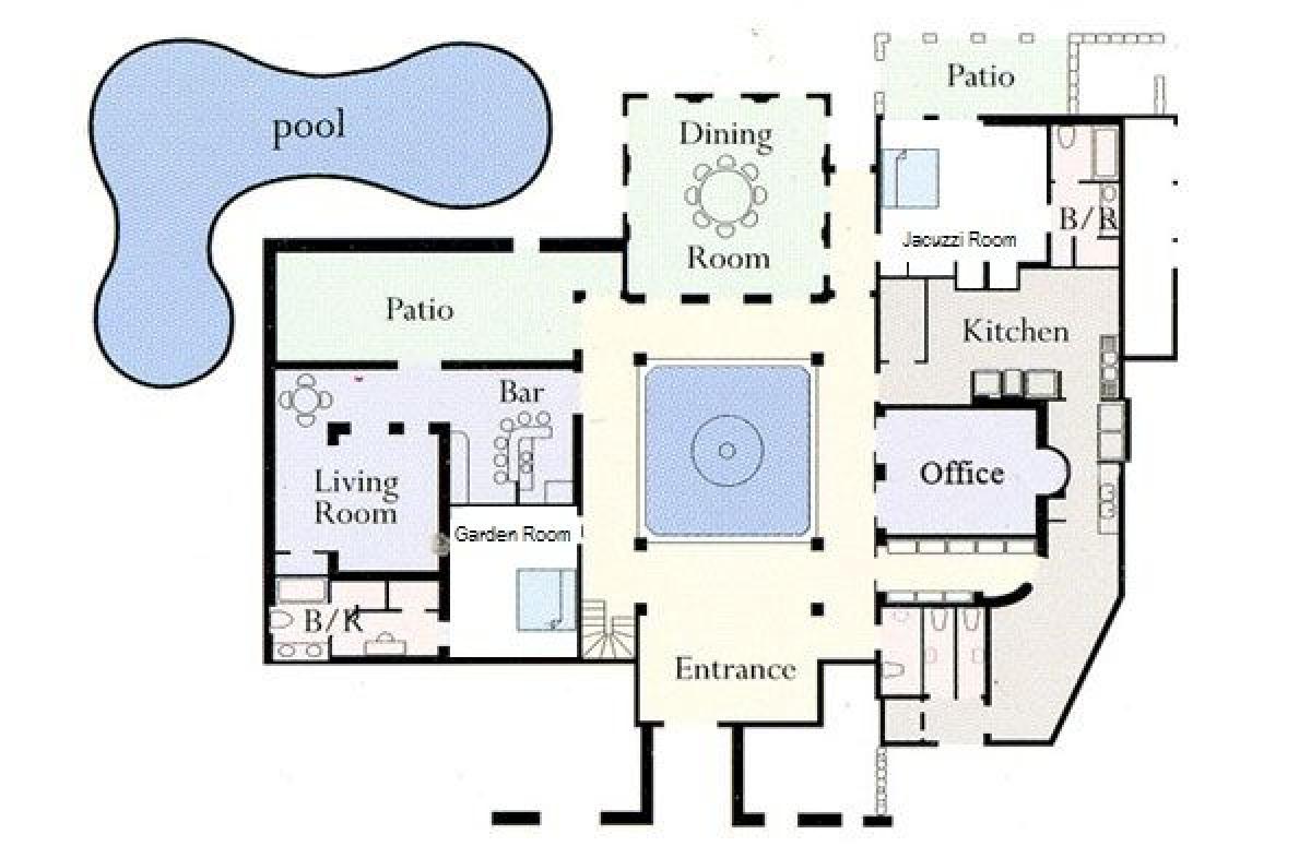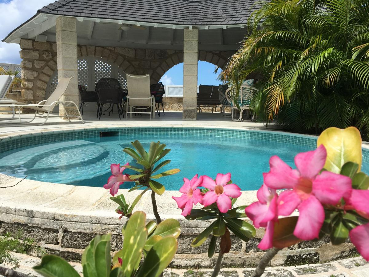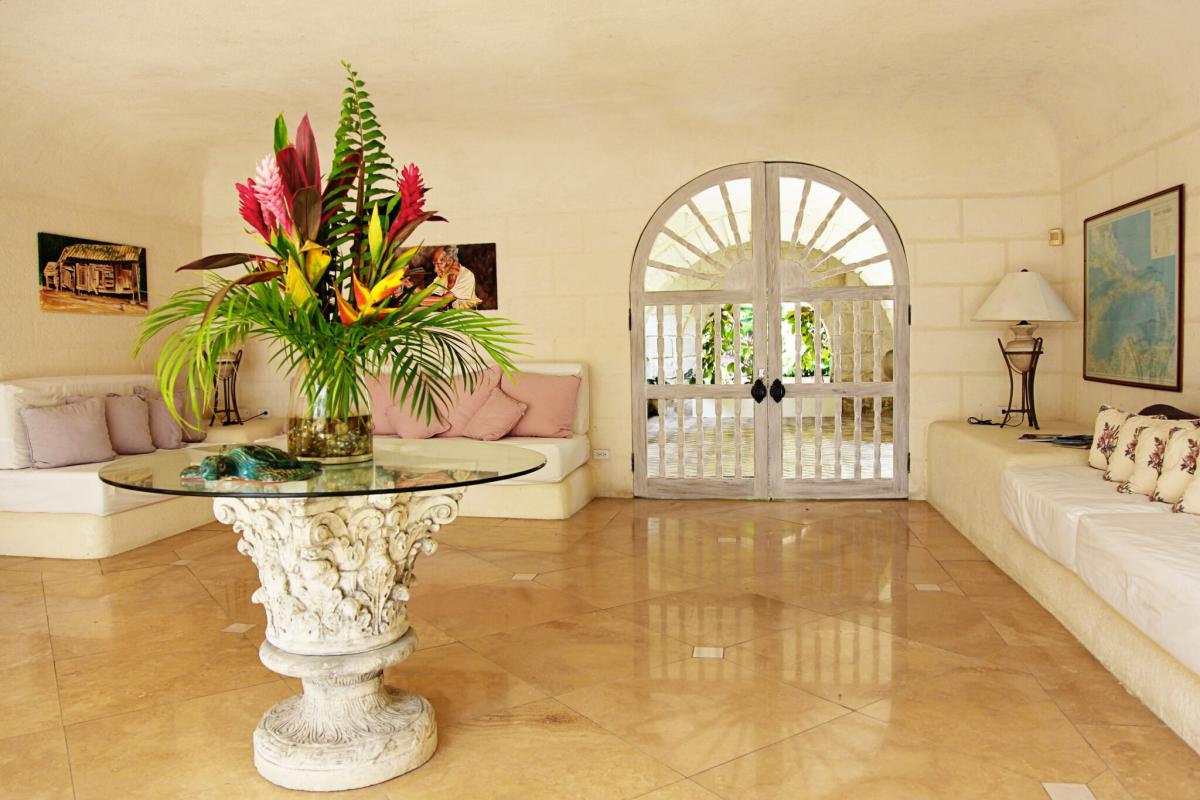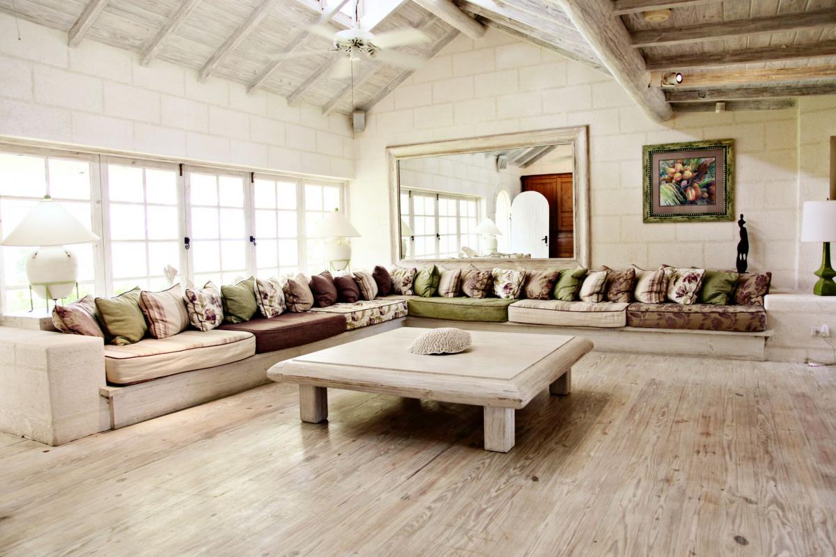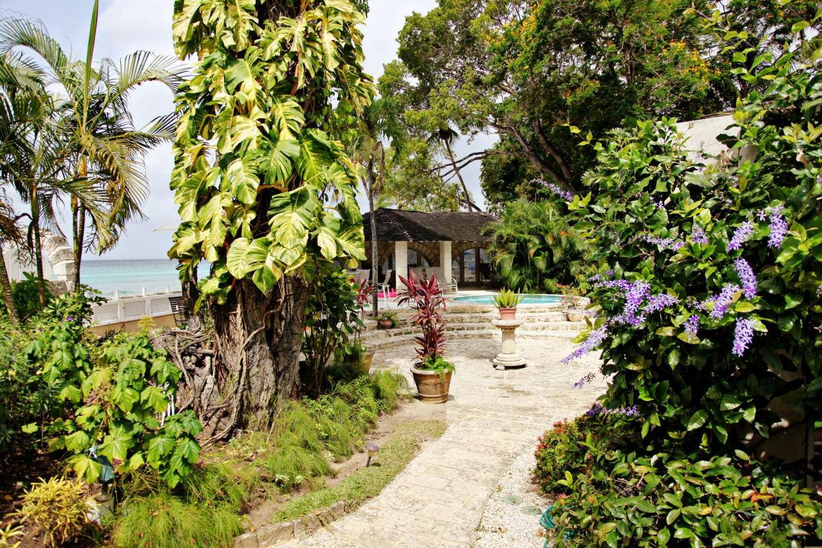 Landfall House, the distinctive, two story, six bedroom property, offers the ultimate in beachfront luxury, located right on famous Sandy Lane Beach, just north of Sandy Lane Hotel. It is an adventure from the moment you enter through the arched doorway into the attractive central courtyard with cascading tropical flowers and bubbling fountain. The ground floor reveals two air conditioned bedrooms with en suite bathrooms, a gazebo dining room, air conditioned bar with sitting area, office, and kitchen. There is a large free form infinity edged swimming pool as well as a separate heated jacuzzi, barbeque pit, and adjacent beachside gazebo. The pool terrace features a sunken seating area which leads to the air conditioned bar. Upstairs a magnificent master bedroom with en suite bathroom awaits you. The master bedroom balcony provides a magnificent view of Sandy Lane Beach. Three equally splendid air conditioned bedrooms all with en suite bathrooms provide ample space for large groups. Also located upstairs is an air conditioned TV room which provides comfortable seating and is equipped with satellite TV, DVD player, VCR and a surround sound stereo system. Throughout Landfall House a high tech sound system is capable of filling the entire villa with the music of your choice. A perfect house for entertaining, this unique property is ideal for sunset cocktails in the jacuzzi, a midday lunch party around the swimming pool, or a starlit barbeque dinner under the stars. Landfall House is one of the top villas in Barbados. Relax and enjoy Barbados vacation rentals with Villa Luxe.