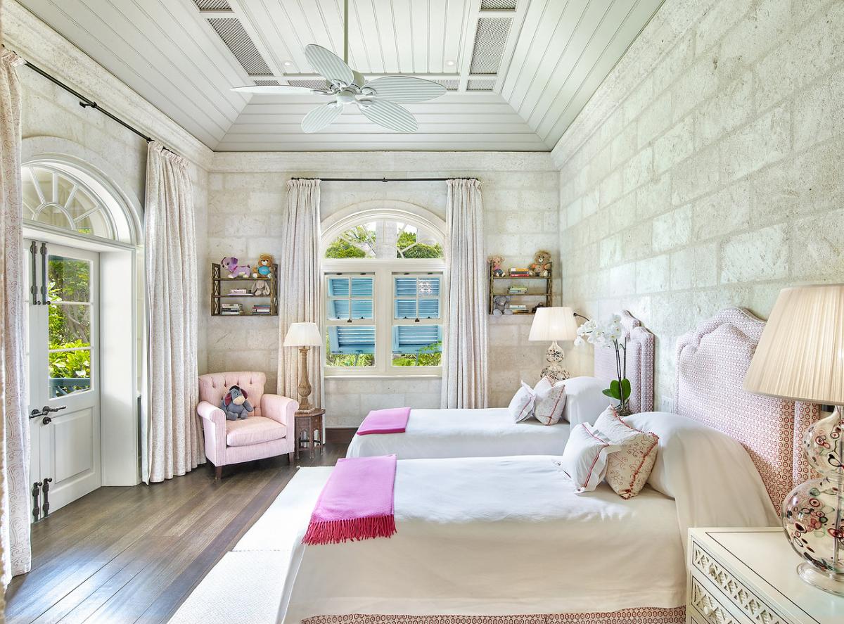 Laughing Waters at Sandy Lane showcases quintessential Caribbean architecture by renowned designer Larry Warren, blending with refined interior details like seashell-adorned curtains, plush furnishings, and bold chandeliers. The highlight of this Barbabados rental is its outdoor pavilion, where guests can lounge by the pool, enjoy an open-air entertainment space with a big screen, or dine in an eclectic treehouse setting. Families will appreciate the fully outfitted kid's playroom and easy access to Sandy Lane Beach, where private, shaded loungers await. Additionally, the estate is equipped with secured Wi-Fi and Bluetooth-enabled surround sound to set the mood for any occasion.