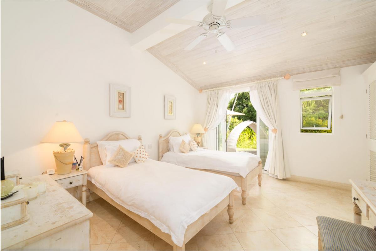 The entry-level has three generous bedrooms with ensuite bathrooms and private outdoor terraces. On the lower level is a spacious guest apartment equipped with its own entrance, a large bedroom, an open-plan living area, an ensuite bathroom, and a private dressing room. There is also a stylish one-bedroom cottage in the garden with its terrace. Finally, the top floor of Mango Walk has an impressive primary suite with an ensuite bathroom, a walk-in wardrobe, and an oversized terrace giving ultimate views of the sea and lush gardens. Guests can access the primary suite through internal stairs or an outdoor staircase from the pool area.