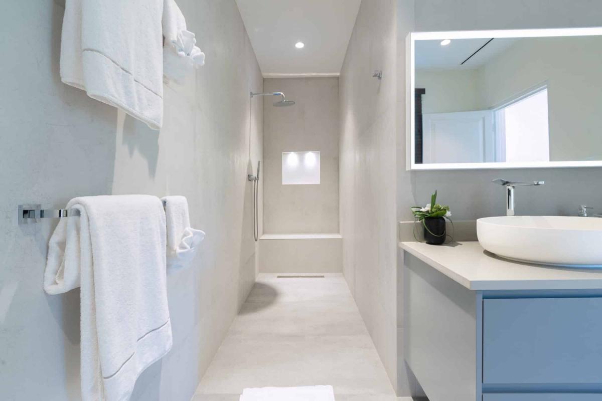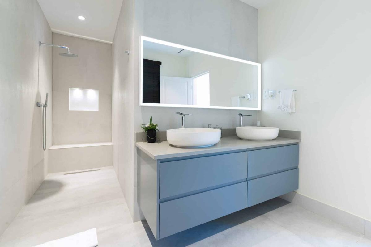 The villa’s interiors feature soaring ceilings, sleek contemporary furnishings, and carefully curated décor that create an atmosphere of understated luxury. A fully automated entertainment system, Apple TV, and Sonos sound system provide effortless modern convenience throughout. The main residence includes four beautifully appointed bedrooms, while a separate self-contained cottage offers two additional suites—ideal for guests or extended family seeking privacy. With three king suites and three twin bedrooms, the layout offers exceptional flexibility for families and larger groups.