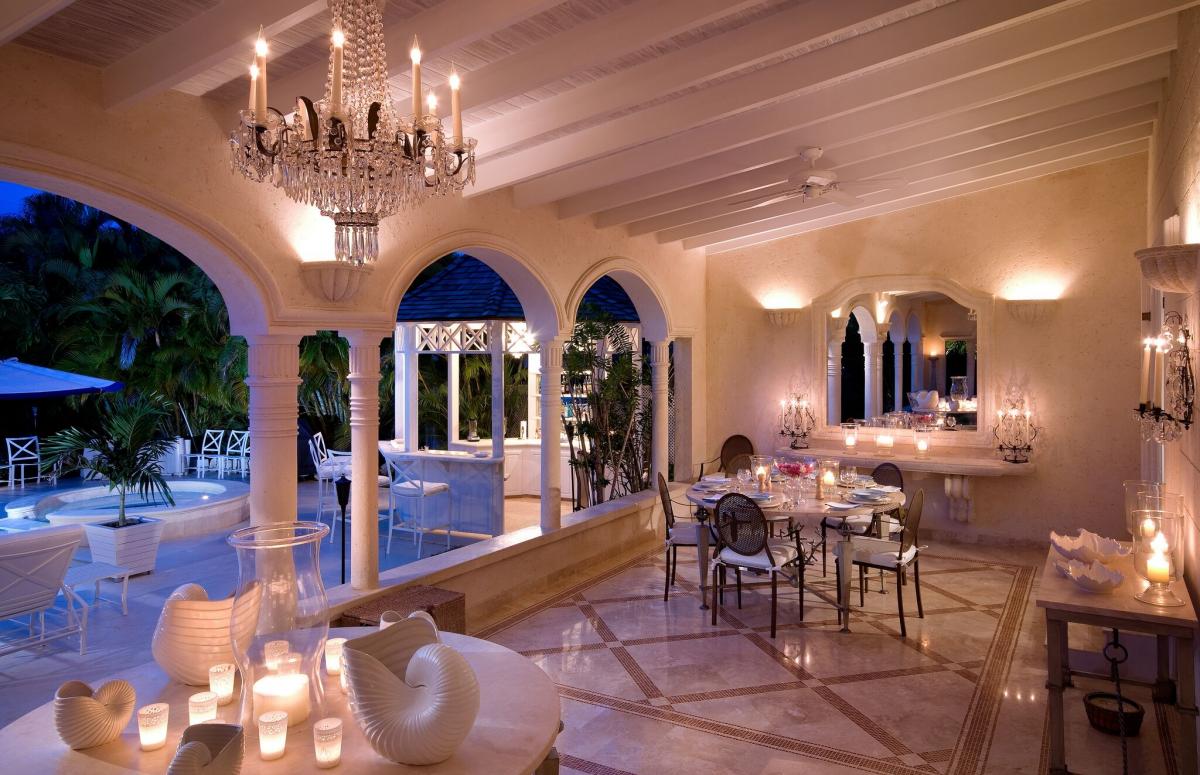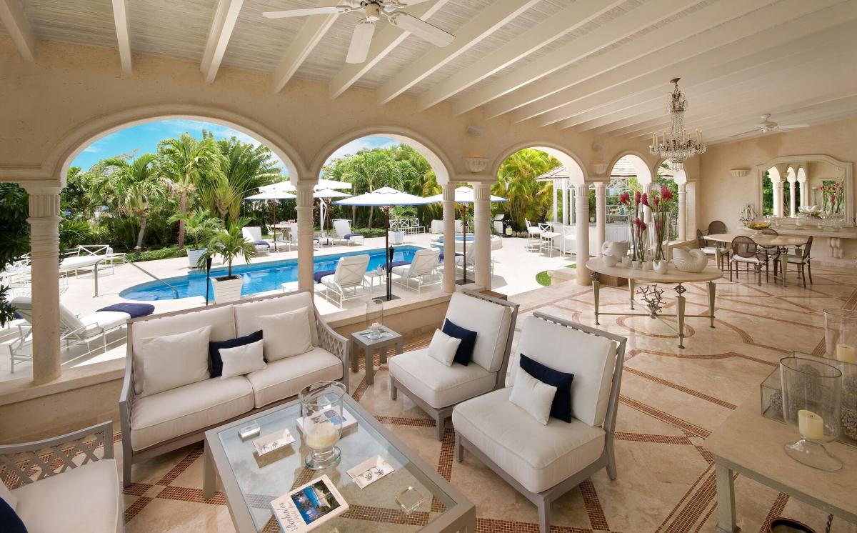 The covered patio, offering spectacular views of the swimming pool and well-manicured gardens, along with the dining area, wet bar and outdoor heated Jacuzzi render the outdoor living space as appealing as the villa's opulent interior, making Monkey Puzzle ideal for entertaining.