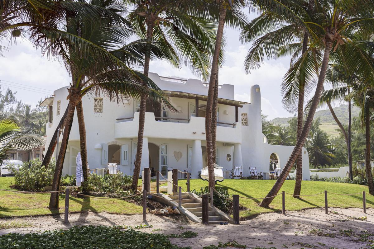 Pebble is located on the secluded East Coast, designed by Sophie Domenge and inspired by French architect Jacques Couëlle. This Barbados villa blends seamlessly with the rugged, windswept landscape, providing a unique sanctuary where guests can reconnect with nature and immerse themselves in the sounds of the Atlantic Ocean. With its sculptural design, curved ceilings, and roughly textured white walls, Pebble offers an authentic and harmonious living experience that flows naturally with the sun's path throughout the day—from morning yoga in the spiritual room to moonlit relaxation on the roof deck.