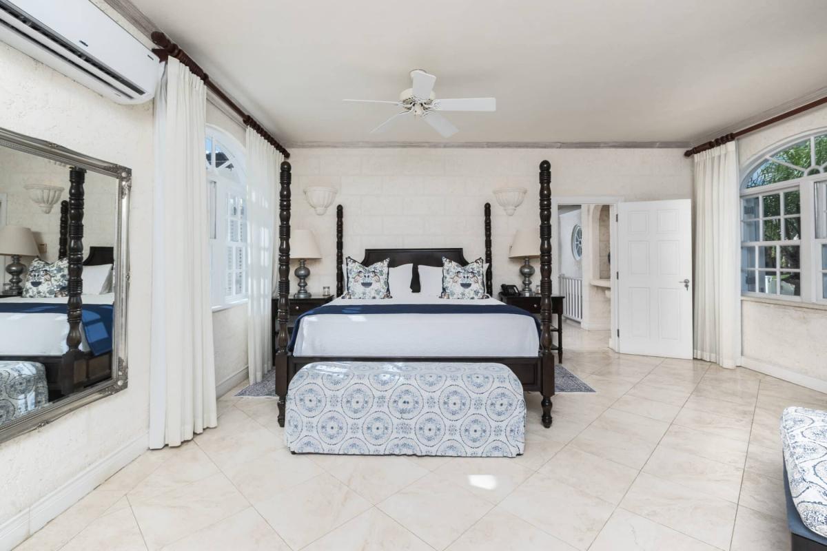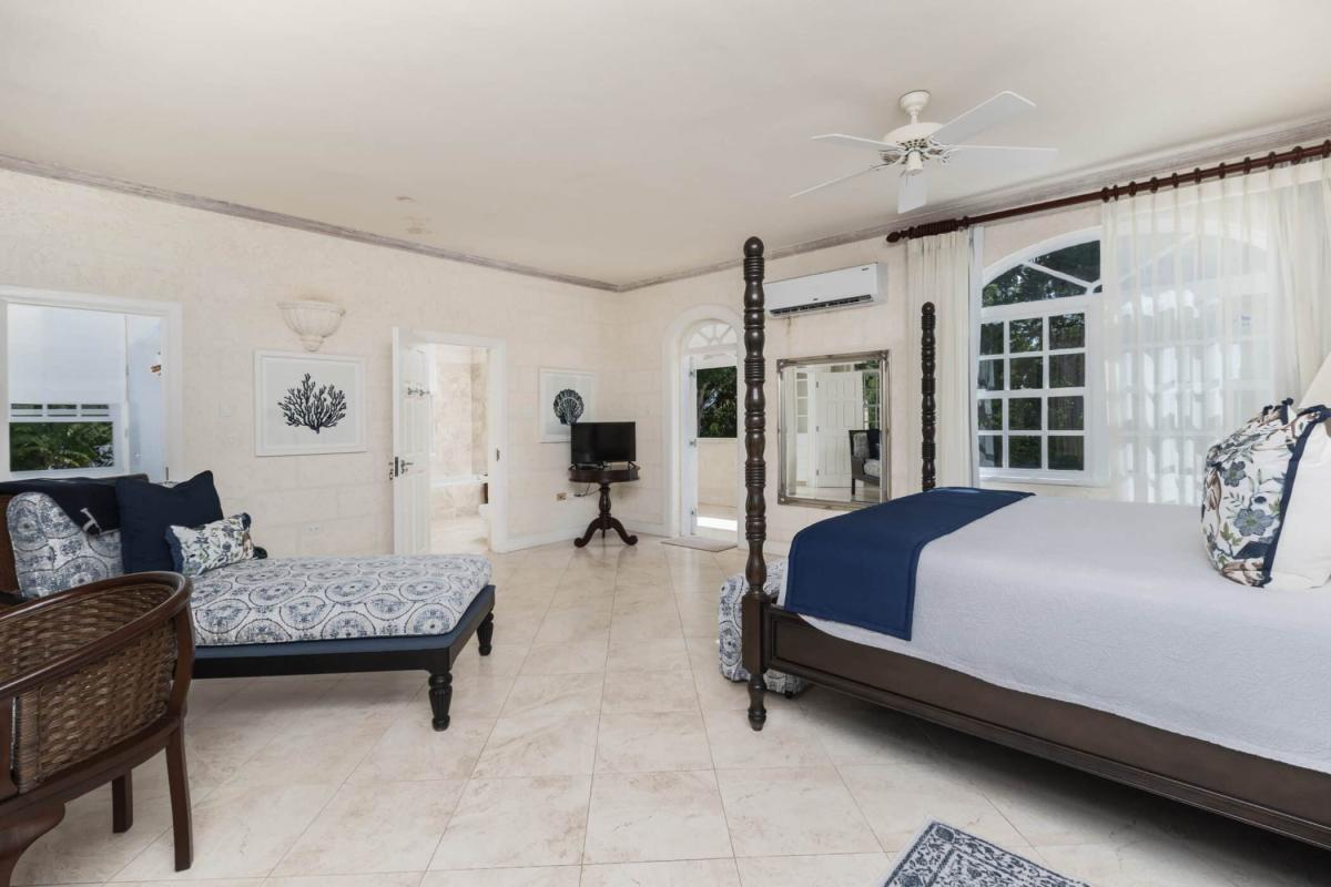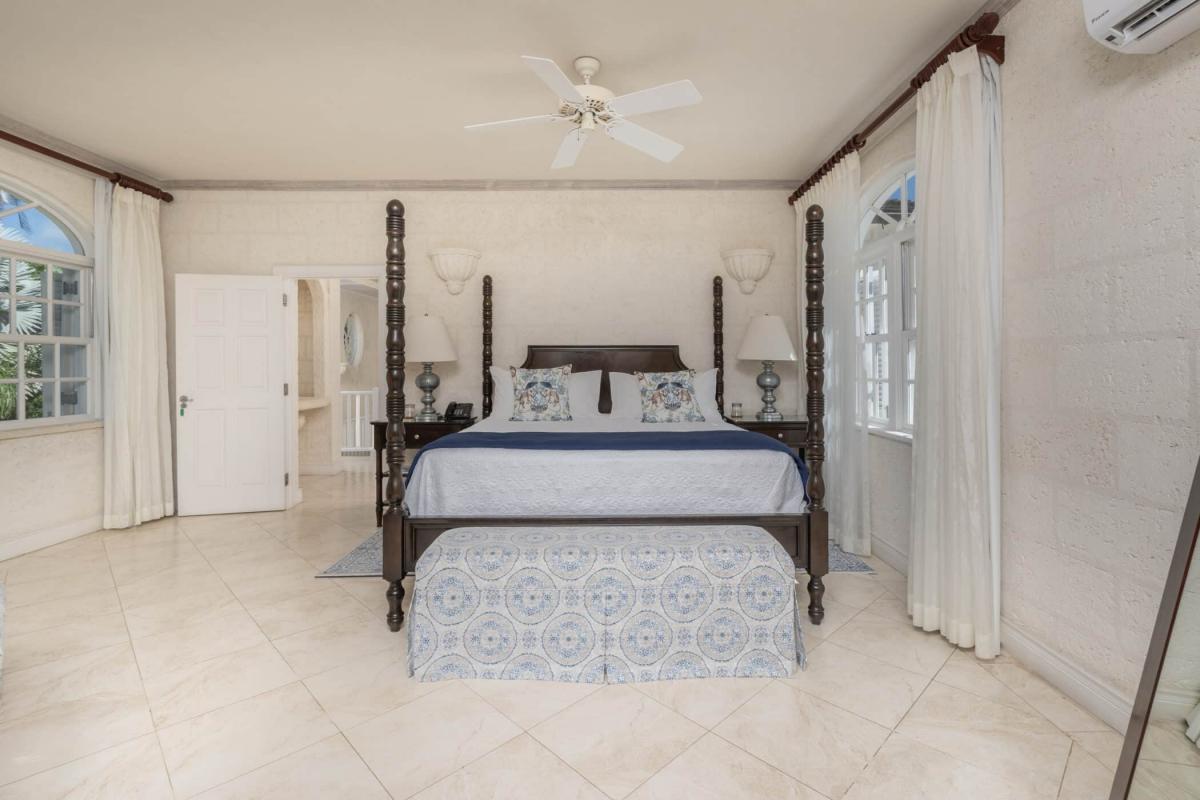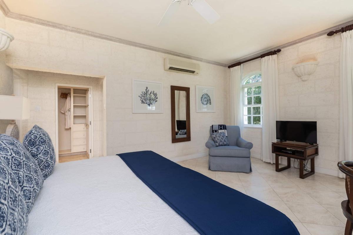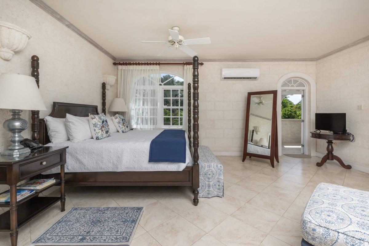 Primary Bedroom 1 (upstairs) King-size bed and private balcony, en suite bathroom, walk-in closet, TV, safe, air conditioning