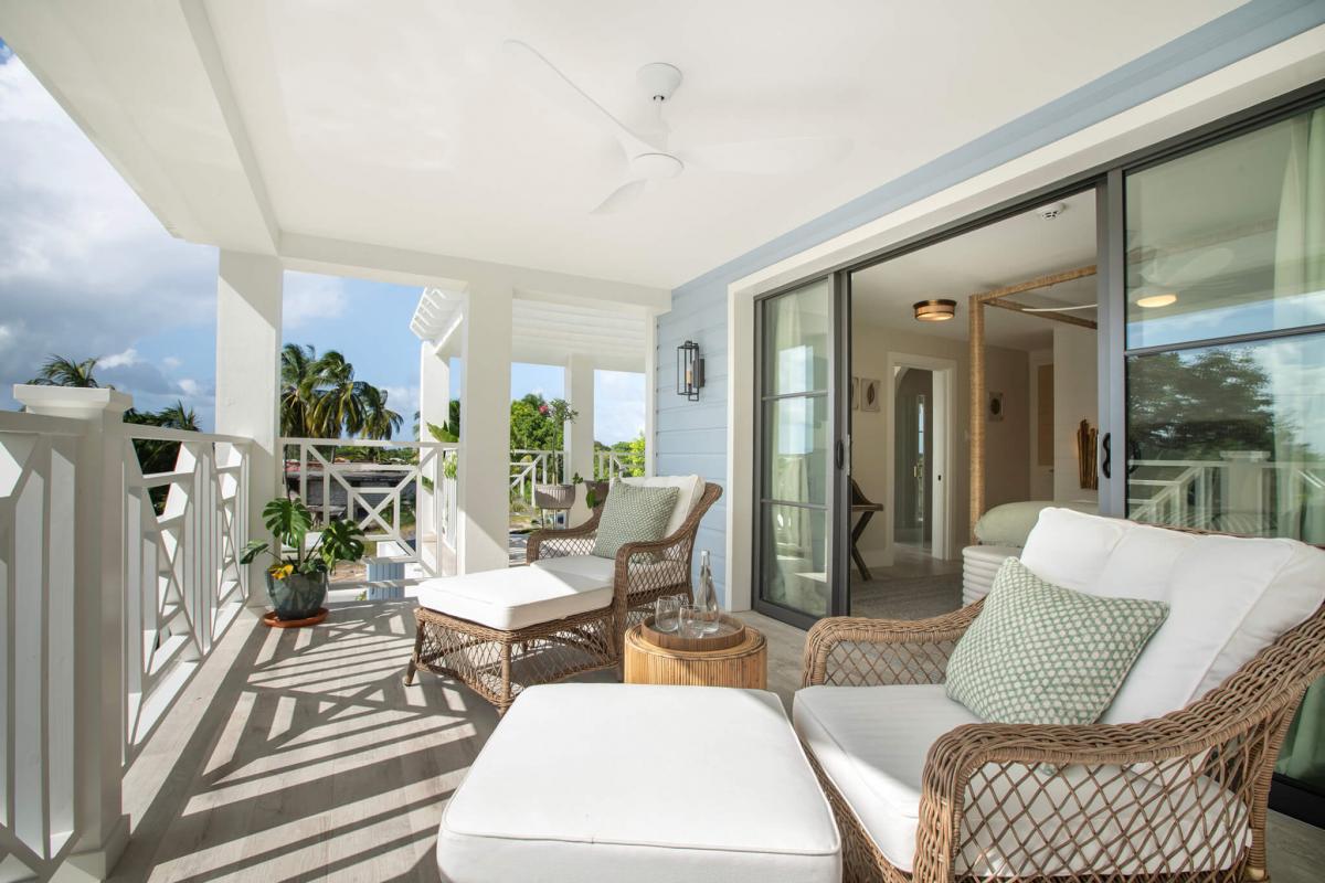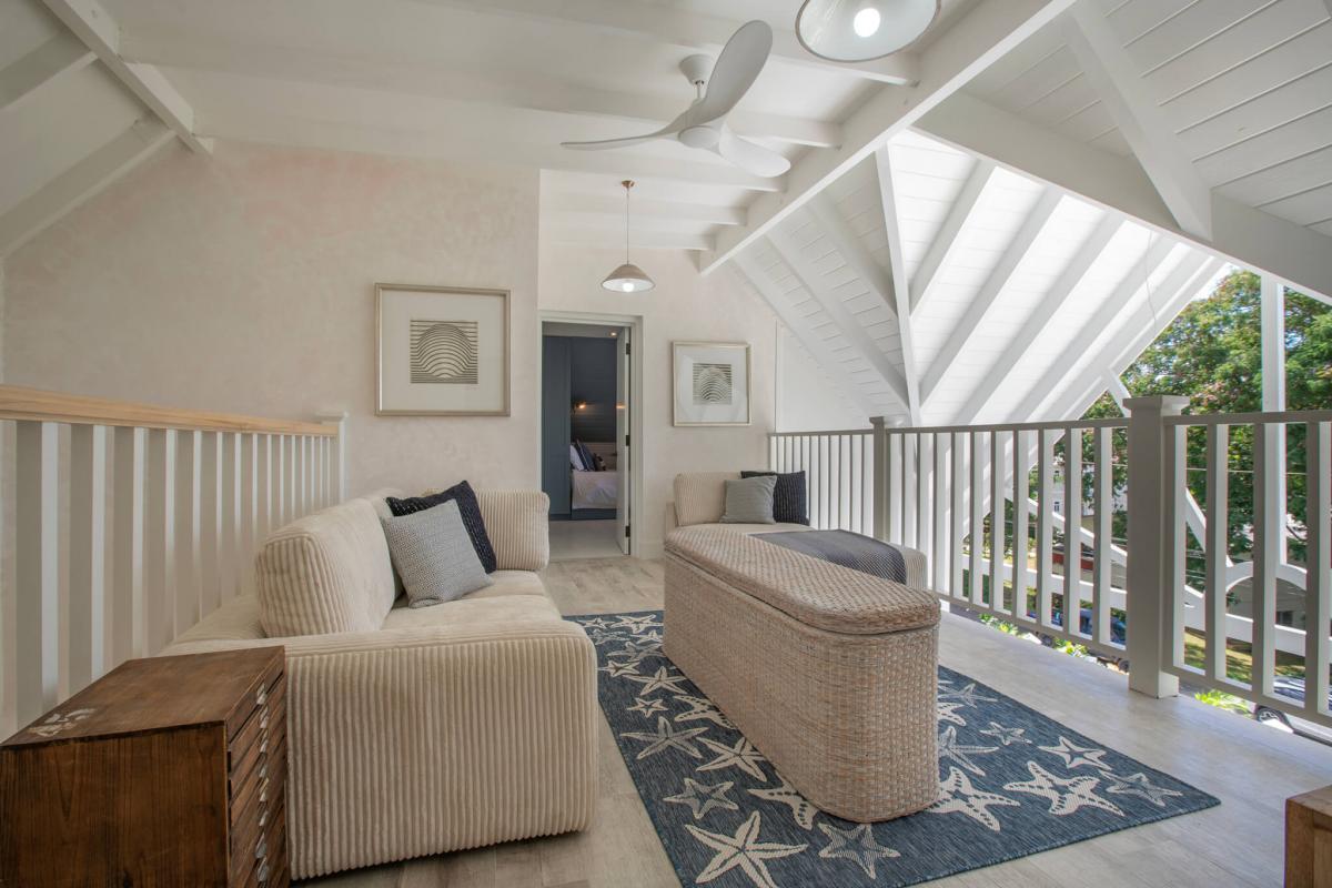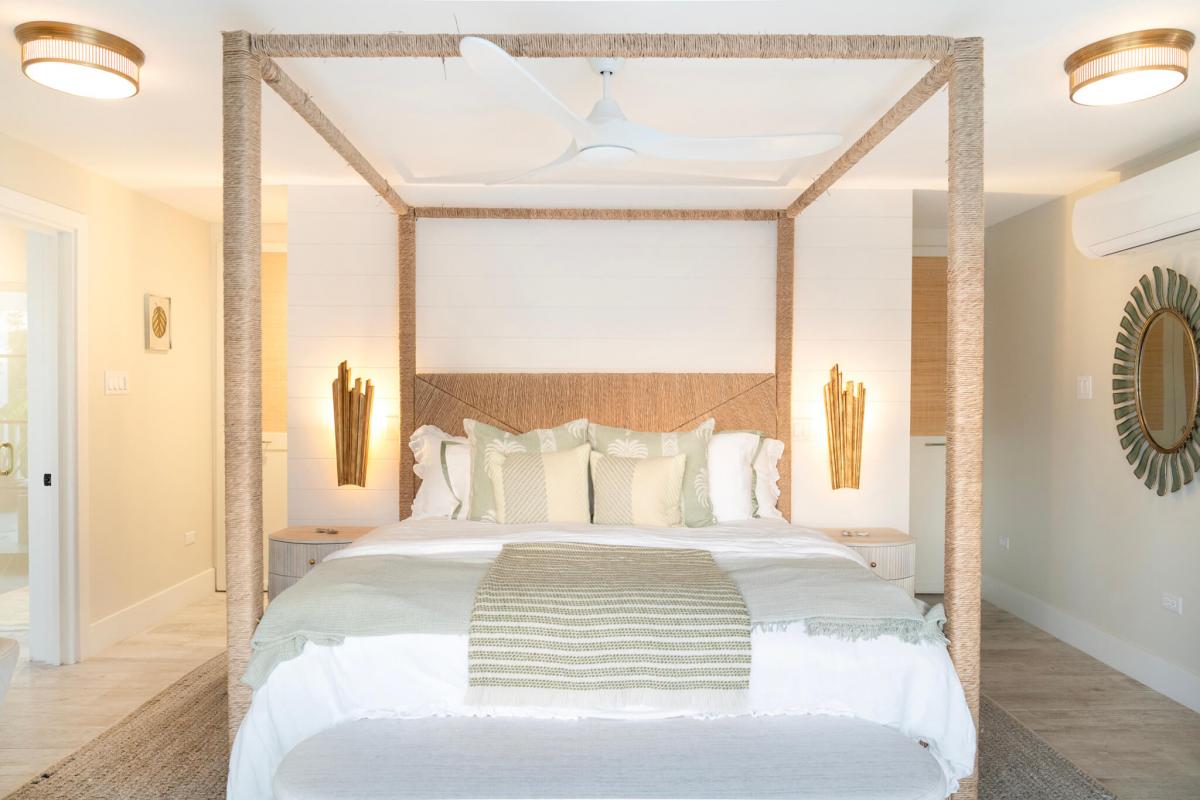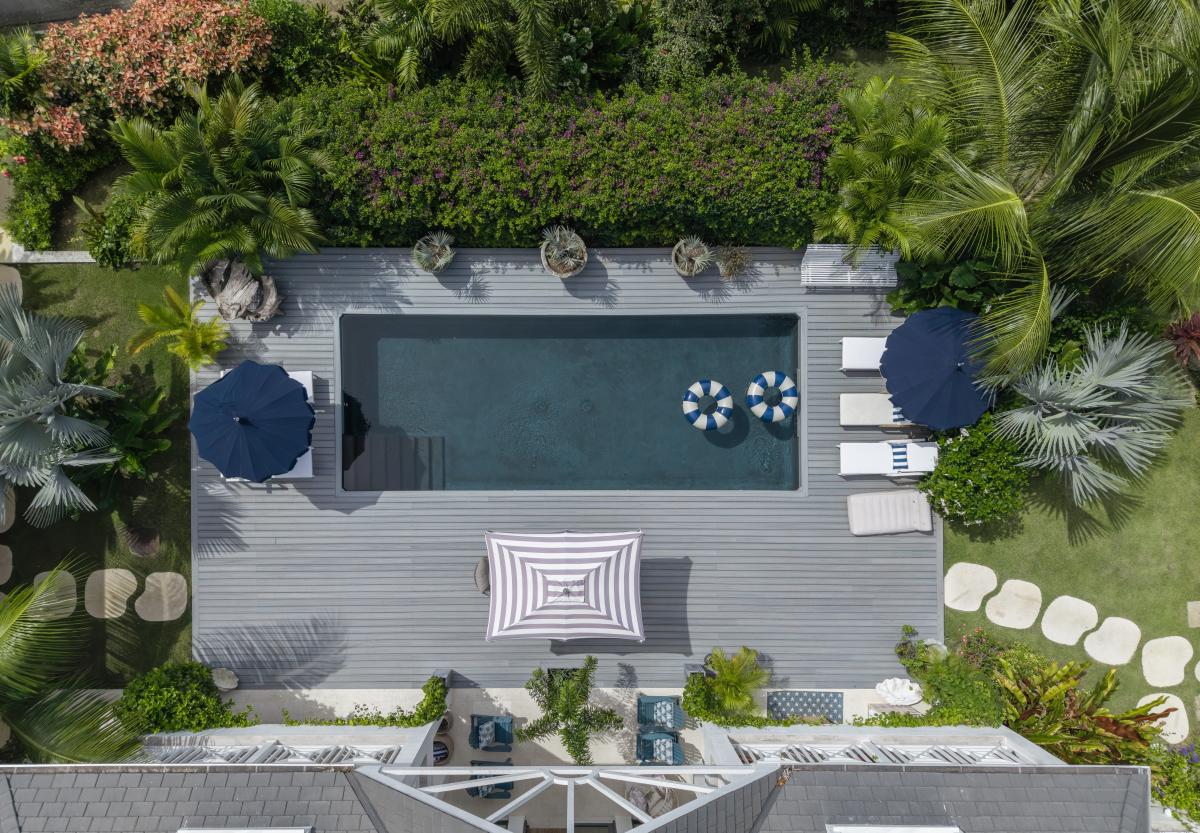 Seastar House was designed by stylist Kate Haynes and offers a sensory haven that promotes wellness and unparalleled comfort. The main house has four exquisite bedrooms, while the other two bedrooms are housed in the charming cottage. The cottage's two bedrooms have ensuite bathrooms, a kitchenette, and inviting terraces. Both living spaces exude an airy charm with balconies and open areas that bring the tropical outdoors inside. The primary bedroom suite elevates opulence with an indulgent bathtub that overlooks the gardens and pool, the perfect spot to sunbathe. A discrete staff is committed to ensuring guests have the utmost comfort while staying at Seastar House. There is an outdoor pool area with a swim-jet pool with tropical plants and sun loungers surrounding it for the best outdoor relaxation Barbados offers. There are more outdoor adventures for guests, such as paddleboards, kayaks, and surfboards. Guests who enjoy wellness also have hand-selected amenities such as a dedicated yoga and gym studio and a refreshing plunge pool.
