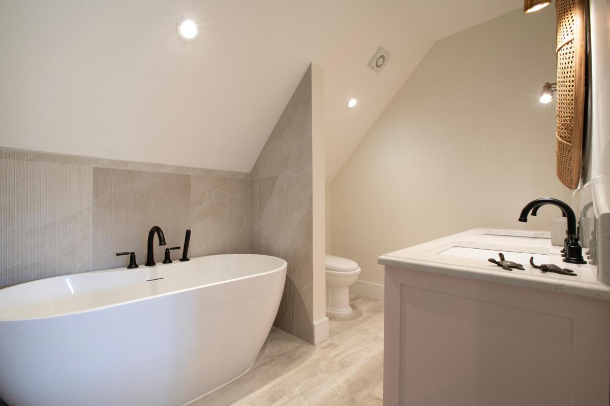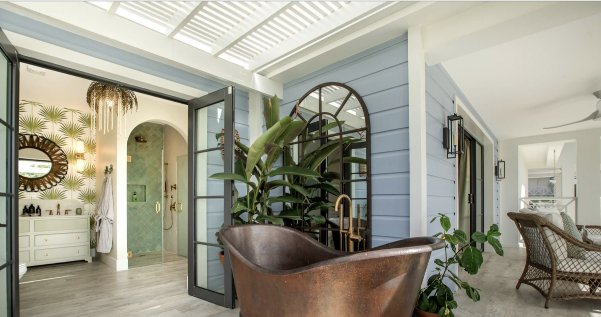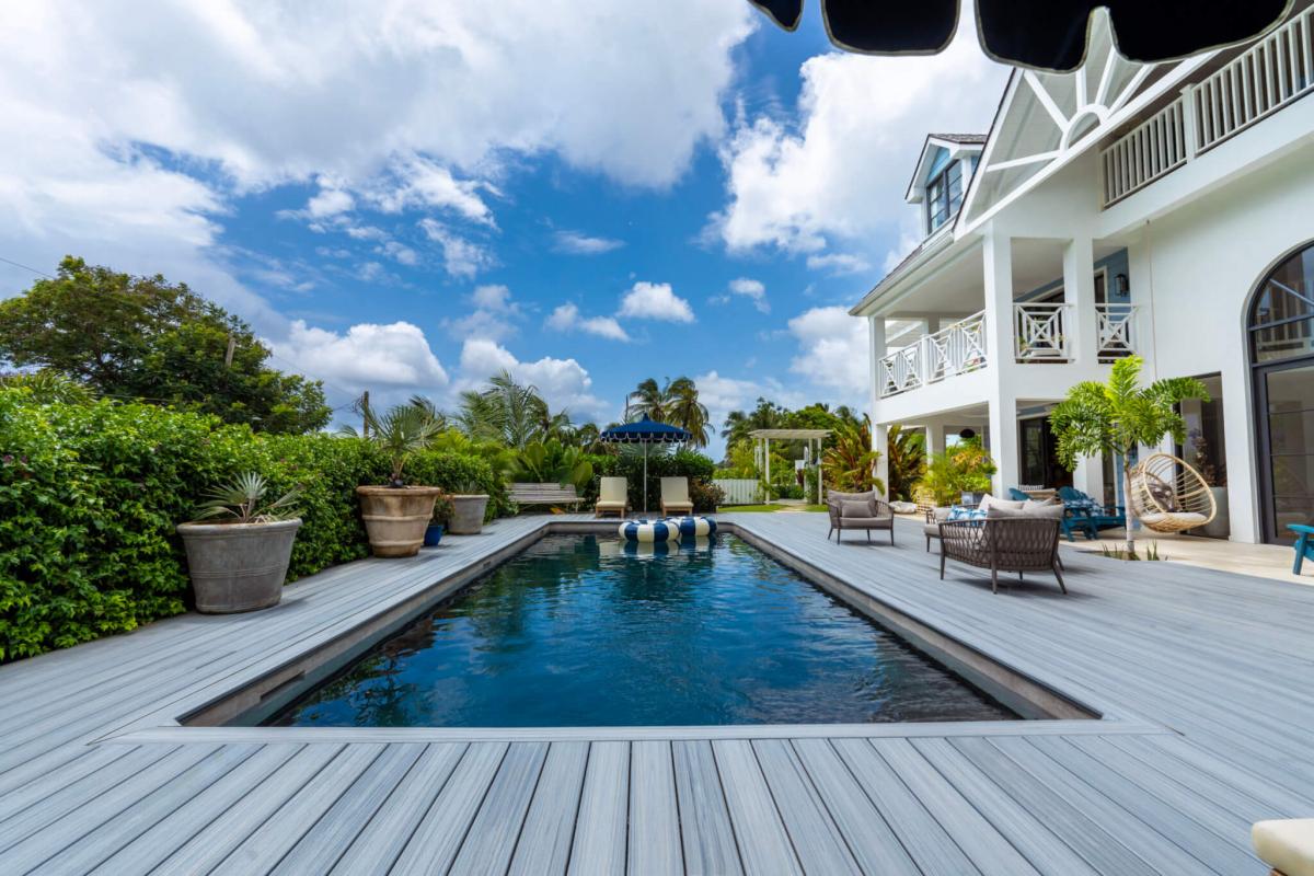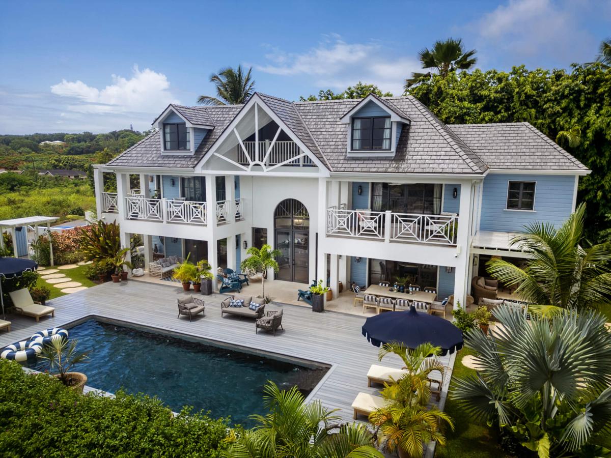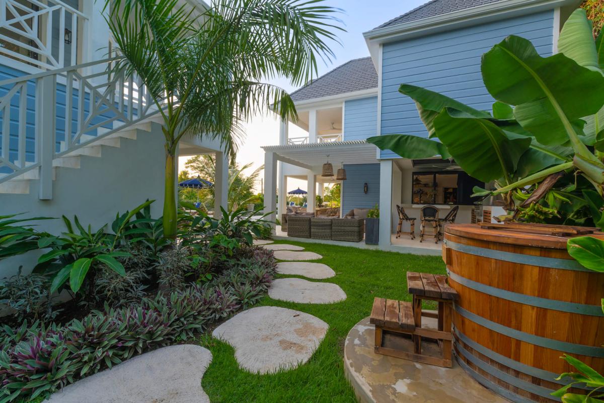 Seastar House was designed by stylist Kate Haynes and offers a sensory haven that promotes wellness and unparalleled comfort. The main house has four exquisite bedrooms, while the other two bedrooms are housed in the charming cottage. The cottage's two bedrooms have ensuite bathrooms, a kitchenette, and inviting terraces. Both living spaces exude an airy charm with balconies and open areas that bring the tropical outdoors inside. The primary bedroom suite elevates opulence with an indulgent bathtub that overlooks the gardens and pool, the perfect spot to sunbathe. A discrete staff is committed to ensuring guests have the utmost comfort while staying at Seastar House. There is an outdoor pool area with a swim-jet pool with tropical plants and sun loungers surrounding it for the best outdoor relaxation Barbados offers. There are more outdoor adventures for guests, such as paddleboards, kayaks, and surfboards. Guests who enjoy wellness also have hand-selected amenities such as a dedicated yoga and gym studio and a refreshing plunge pool.