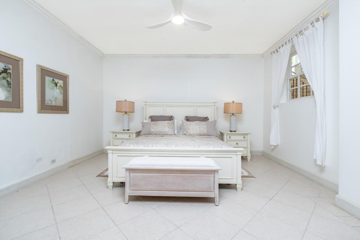 A generous living area and seven bedrooms across the three levels accommodate up to fourteen guests. Four suites are located on the main level, two of which have direct access to the pool deck, family room, powder room, and kitchen. The primary bedroom spans 1,400 sq. ft., the entire first floor, with balconies that overlook the pool deck and the Sandy Lane Estate. One side of this suite has his and hers closets, while the other is the ensuite bathroom with a jacuzzi tub. The final two bedrooms are located on the basement level, along with the home theatre.