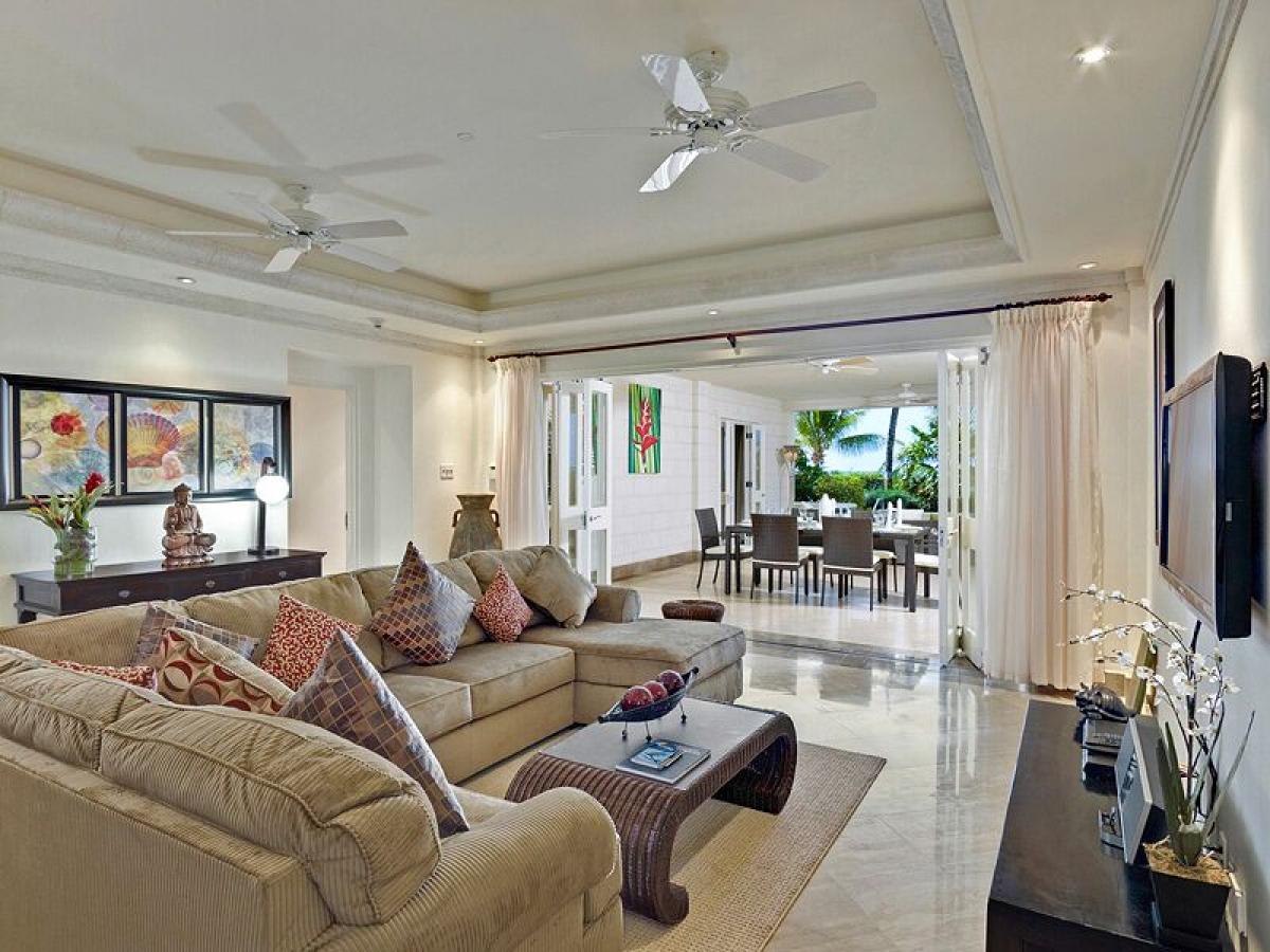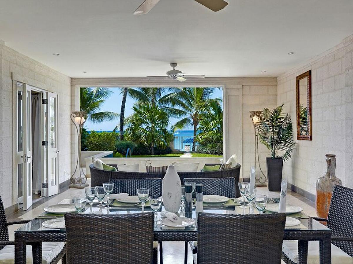 The apartment benefits from a large covered terrace and dining area and the master bedroom and living and terrace areas spill out onto an exceptional uncovered patio area where one can sit and enjoy the luxury of this special spot on Paynes Bay Beach where swimming pool, manicured tropical gardens and the swept beach, sun beds, umbrellas and beach butler service awaits.