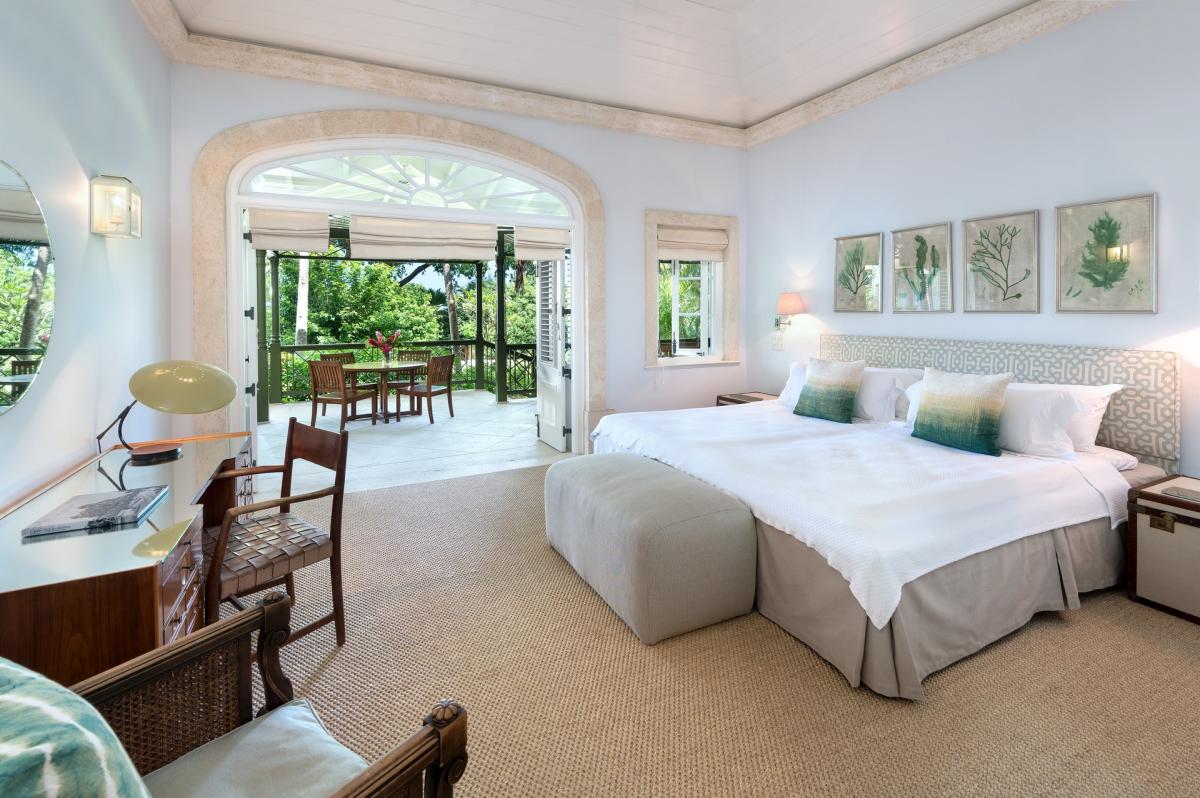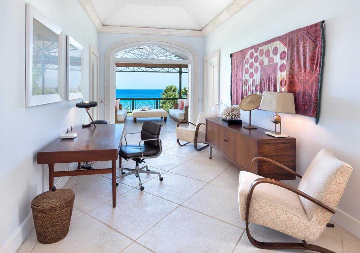 Villa Gardenia's open plan layout welcomes guests as soon as they enter. The foyer opens to an expansive living/dining room featuring coral stone pillars. Guests are then lead out to a large veranda that takes full advantage of the Caribbean sunlight and pictureesque views. Below, the first floor also opens to a terrace complete with wet bar and gazebo. This villa also features a family friendly media room and fitness room.