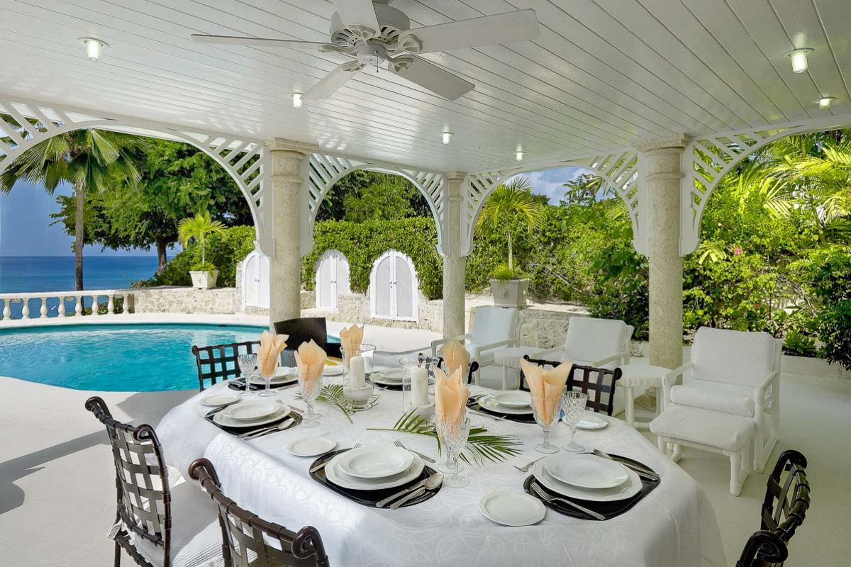 Whitegates, a beautiful four-bedroom beachfront home, situated on a cliff-side with magnificent sea views. The villa has a bright modern interior with fully equipped kitchen, casual dining area and bar, formal dining room and comfortable living area which opens out to an expansive terrace. Accommodating up to 8 guests with four well-appointed bedrooms all with private en-suite bathrooms and air conditioning. The stunning outdoor living space features sundeck, patio, kidney-shaped pool, outdoor dining area and direct beach access via a stairway.