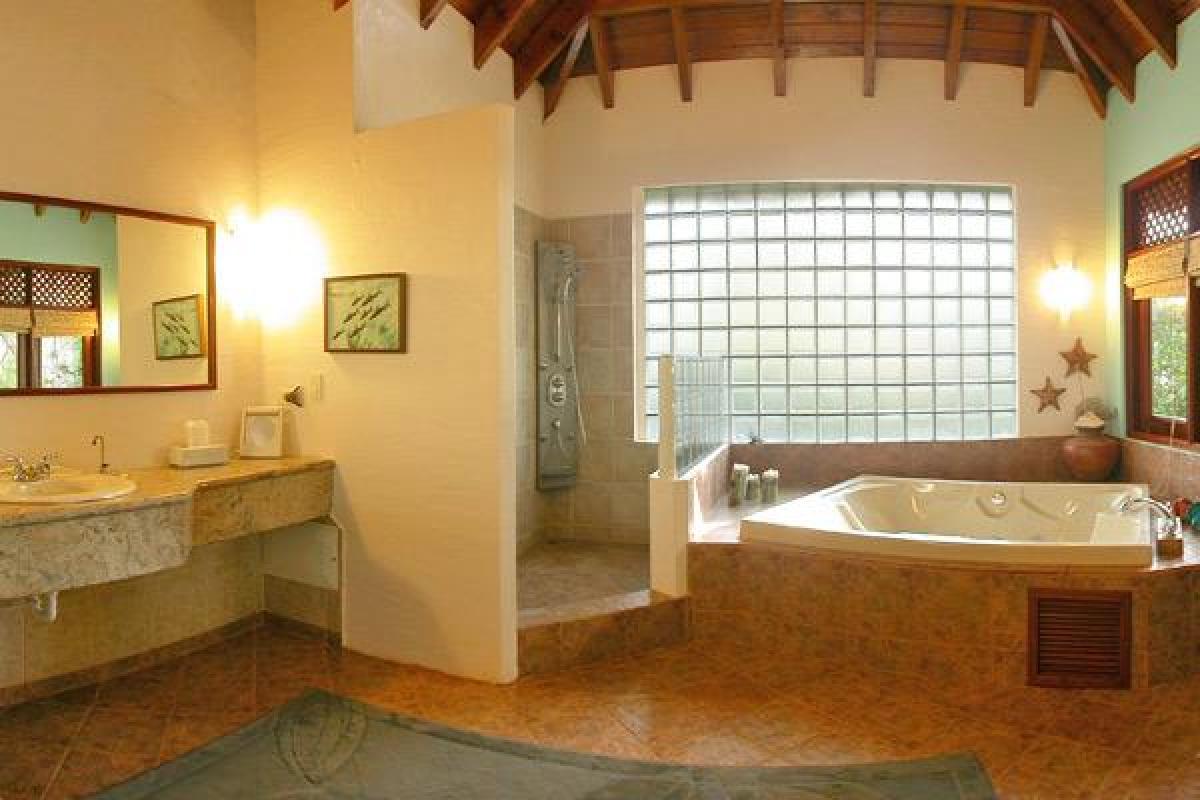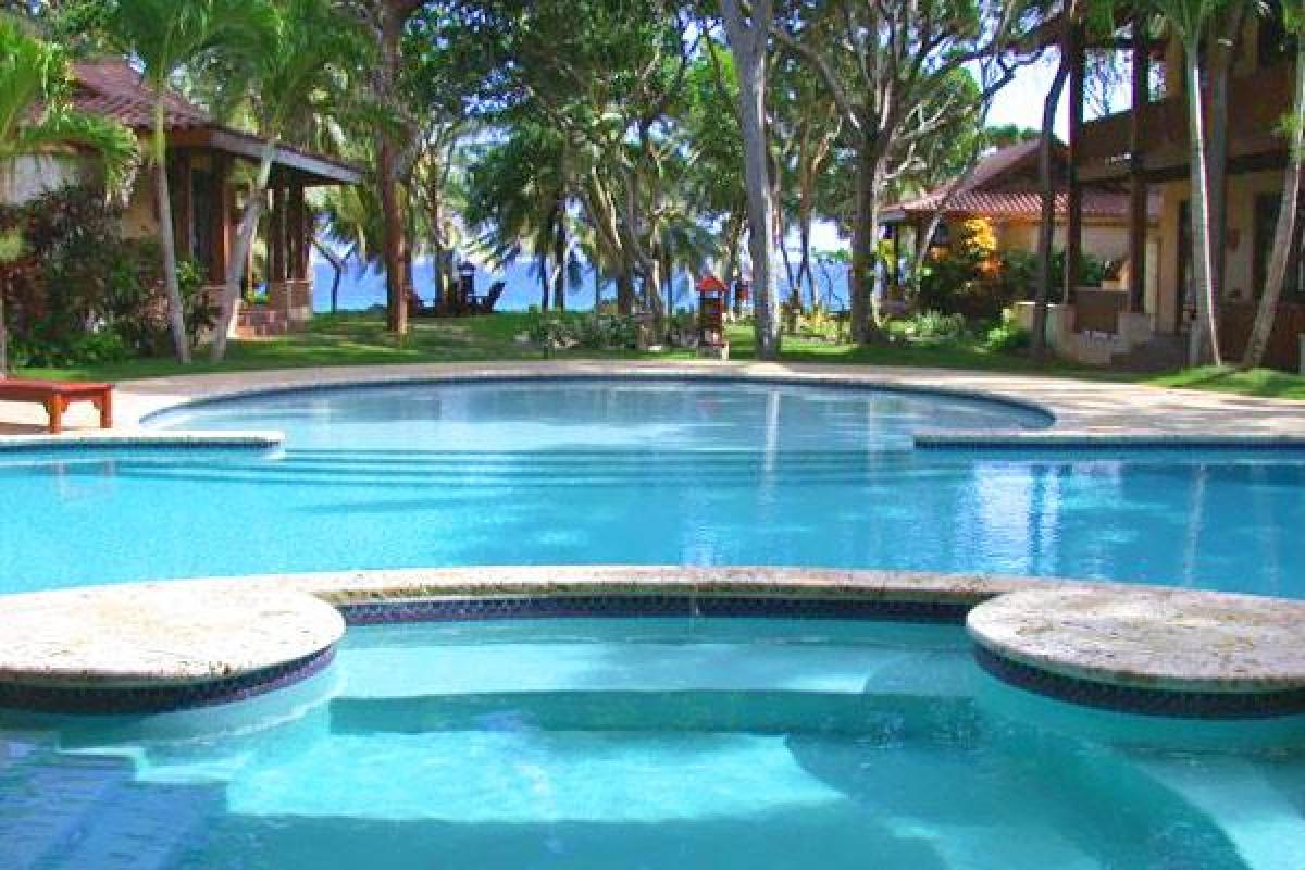 The accomodations: The main house has a spacious master suite and the three additional cottages house the remaining bedrooms. The Diamonte Suite is on the second floor of the main house and has a king size bed, full bath with Jacuzzi, private balcony and sitting area. The Presidente Suite has separate sleeping and living areas, a king sized bed plus a queen size sleeper. There is a two person Jacuzzi, separate shower and a private balcony with ocean and pool views. The Piscina Suite comes with two bedrooms, two baths and a living room. There are queen size beds and a twin sleeper. The living room has a full size futon. There is a poolside veranda and you will have pool and ocean views. The Royal Palm Suite and The Semana Suite are identical. They both have a king size bed, amazing ocean views and a private veranda. Their full baths come with a Jacuzzi and an outdoor shower.