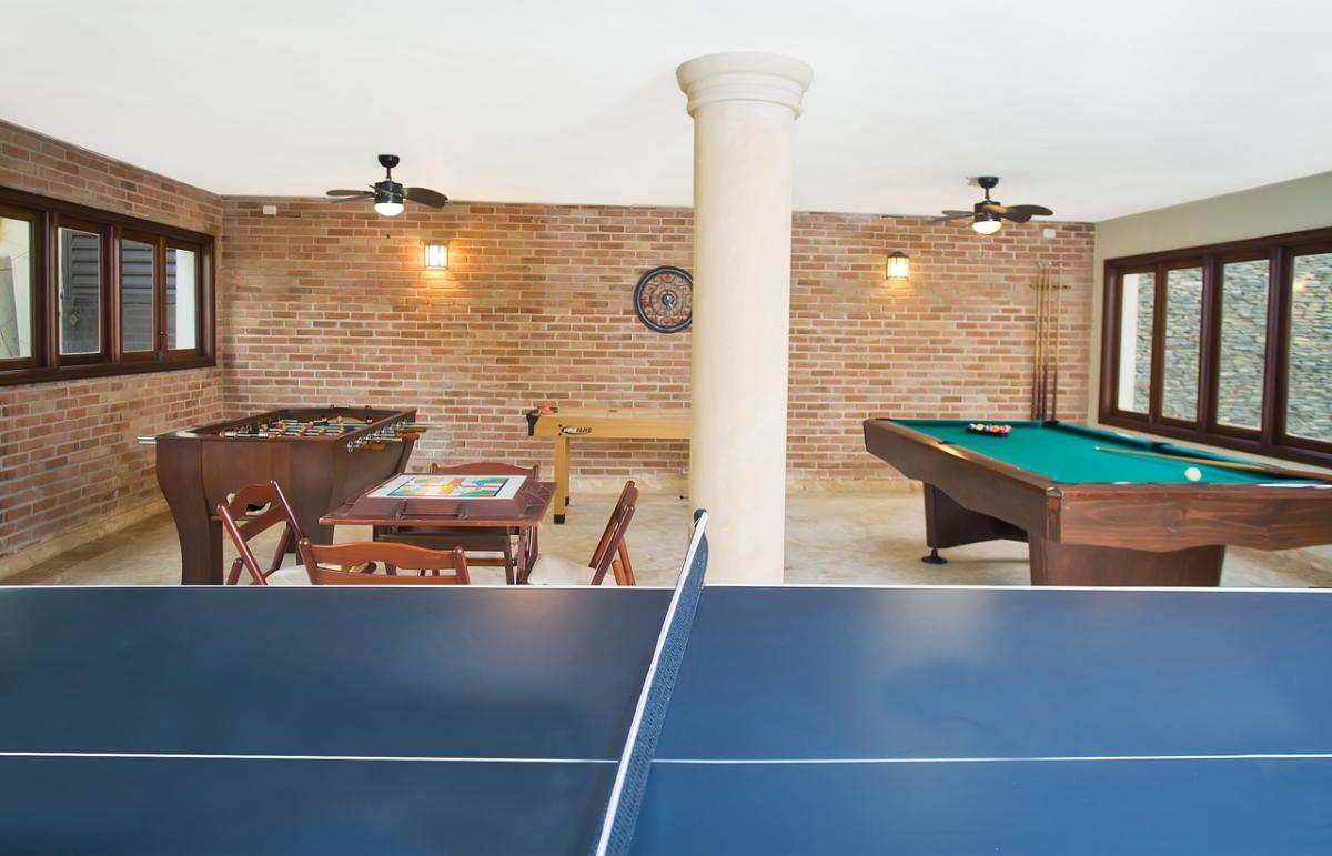 Villa Los Cisnes is perfect for large families and active groups, this one-story villa has plenty of room to relax and play. A basement game room features a pool table, air hockey, darts, and more, not to mention the Tennis Center which is located nearby. Outside, a covered patio offers shade from the warm Caribbean sun, while the pool and whirlpool tub are the perfect spot for a refreshing dip.