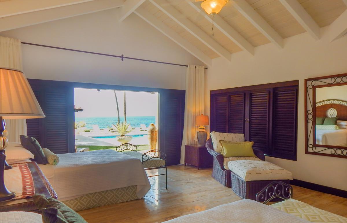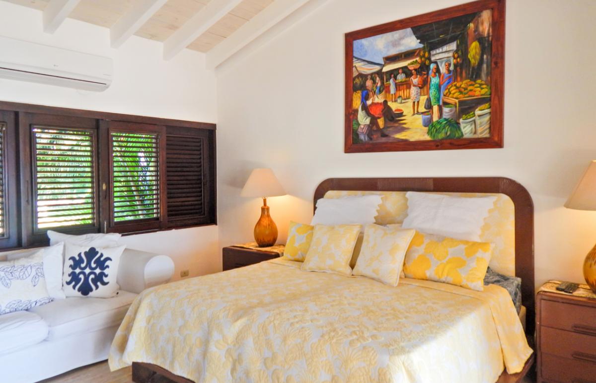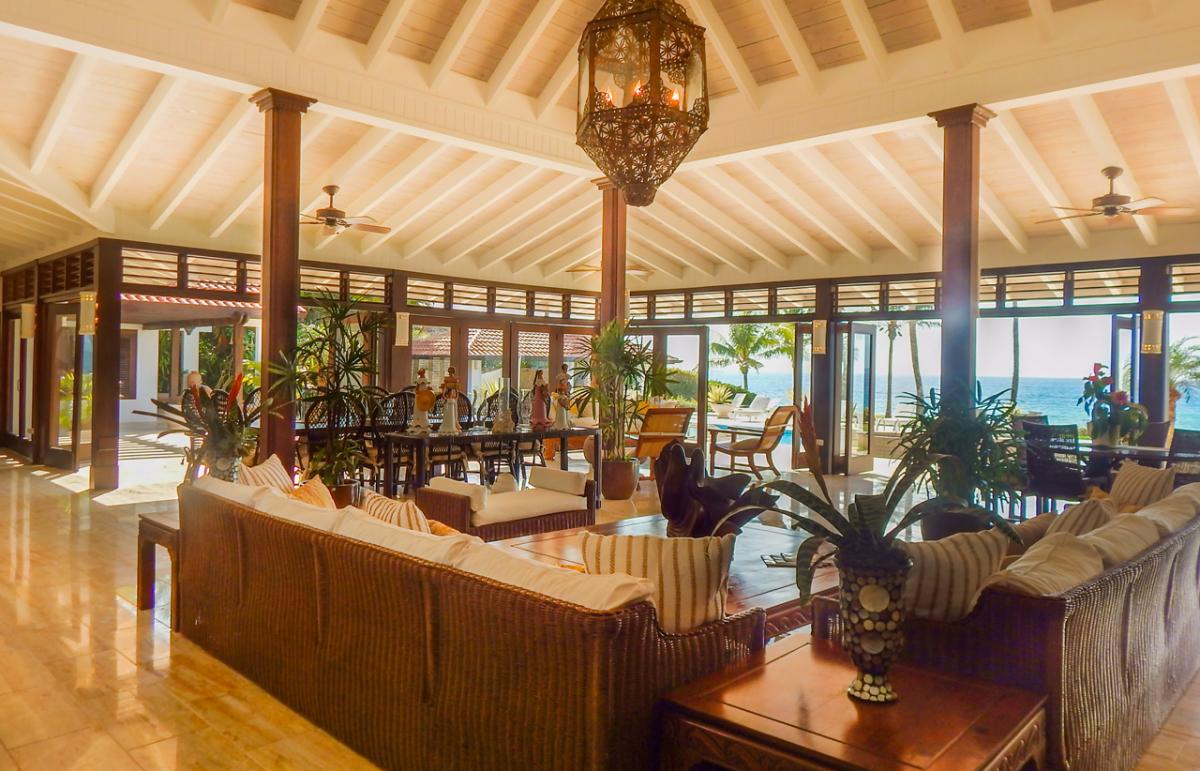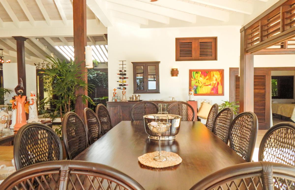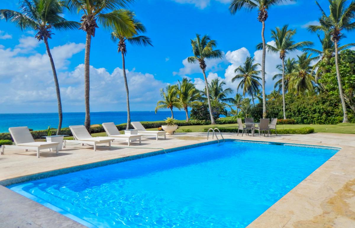 Full of style and comfort, this one-story villa features a large figure-eight shaped pool that sits right in the center of the action. A sandstone terrace, dotted with loungers, connects to a furnished gazebo where ample seating, and a dining table for eight can be found. A quick golf cart ride will bring you to the hotel as well as many of the other resort amenities Casa de Campo has to oer.