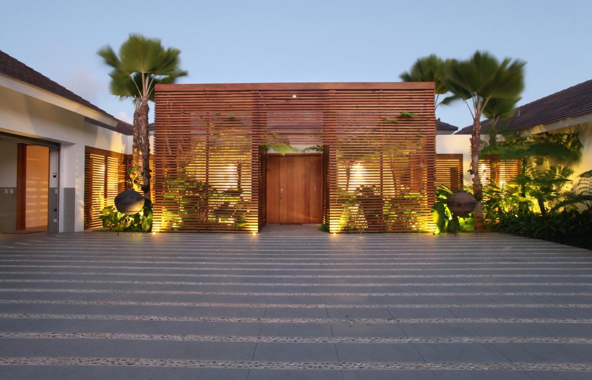 Villa Vogue at Casa de Campo is a spectacular one-story villa offering a warm and welcoming atmosphere. It articulates the ideals of contemporary architecture and design, with a hint of Asian influence. A wide driveway, studded with orchid laden palms, leads to the three-vehicle garage and the impressive entry. Inside, orchid gardens flank the front door in the breezy foyer and corridors on each side lead to the bedrooms.