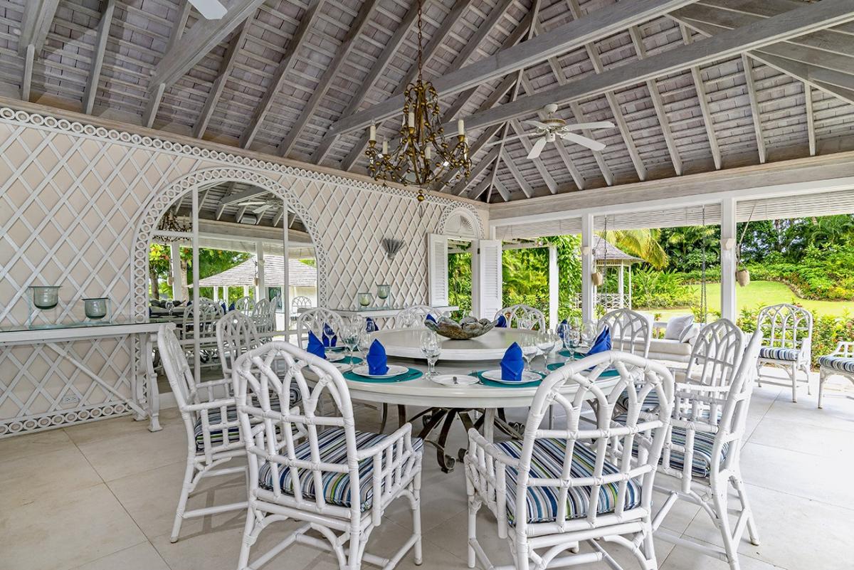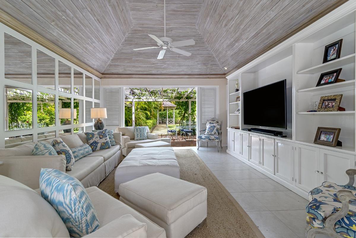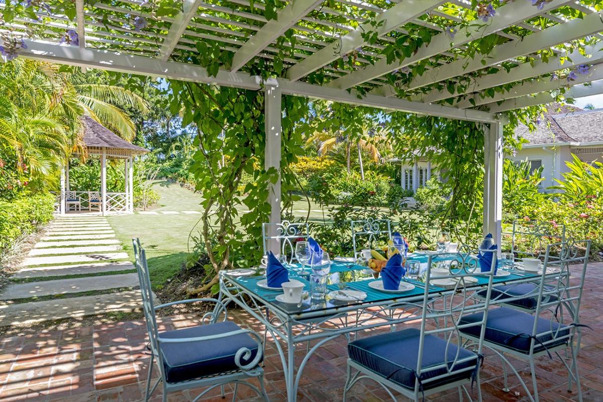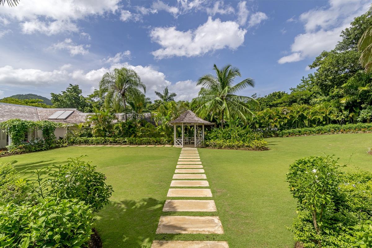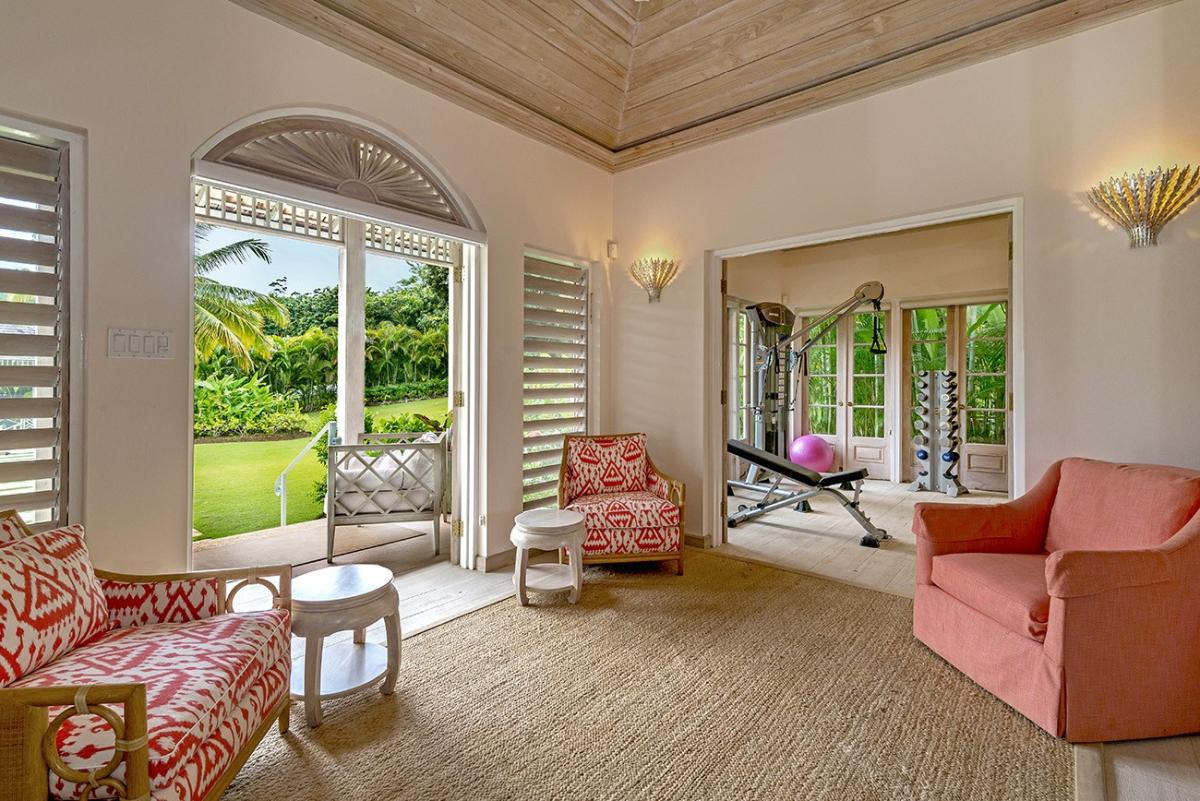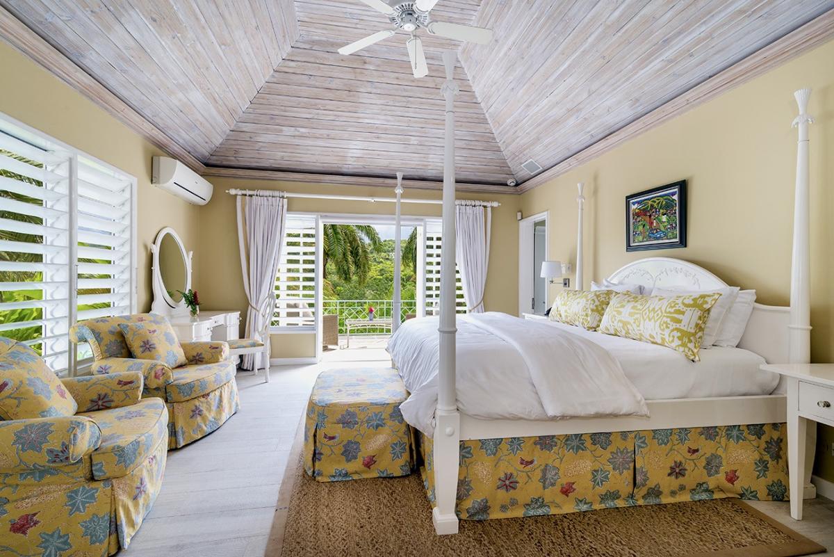 From the Great Room, 18 French doors open to 1,400 square feet of furnished verandahs. Deep cushions cover sofas, chairs, chaises and a wonderful bamboo swing. The view is spectacular day and night. Just beyond the verandah, the private pool spans the front of the house. Adjacent to the pool are the outdoor wet bar and shower and the cutest little powder room in Jamaica.